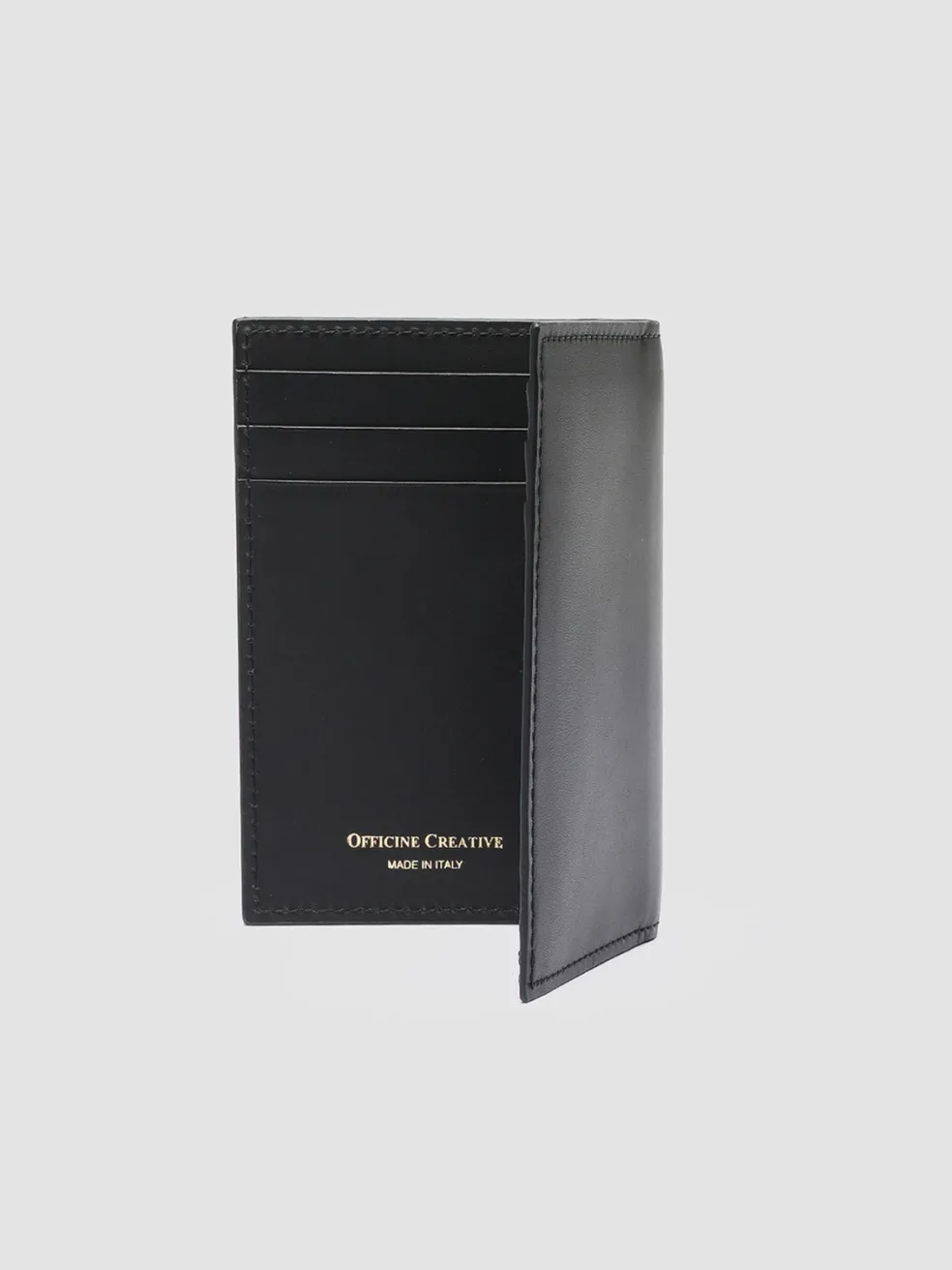 Handcrafted from premium black leather our Boudin vertical bifold wallet reveals a sleek and timeless design. It features six card slots pockets for banknotes and bills and our gold-tone logo lettering print.