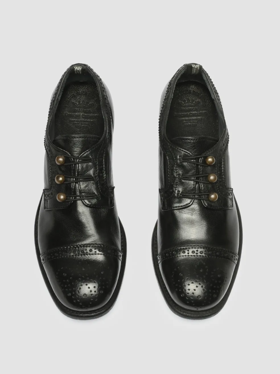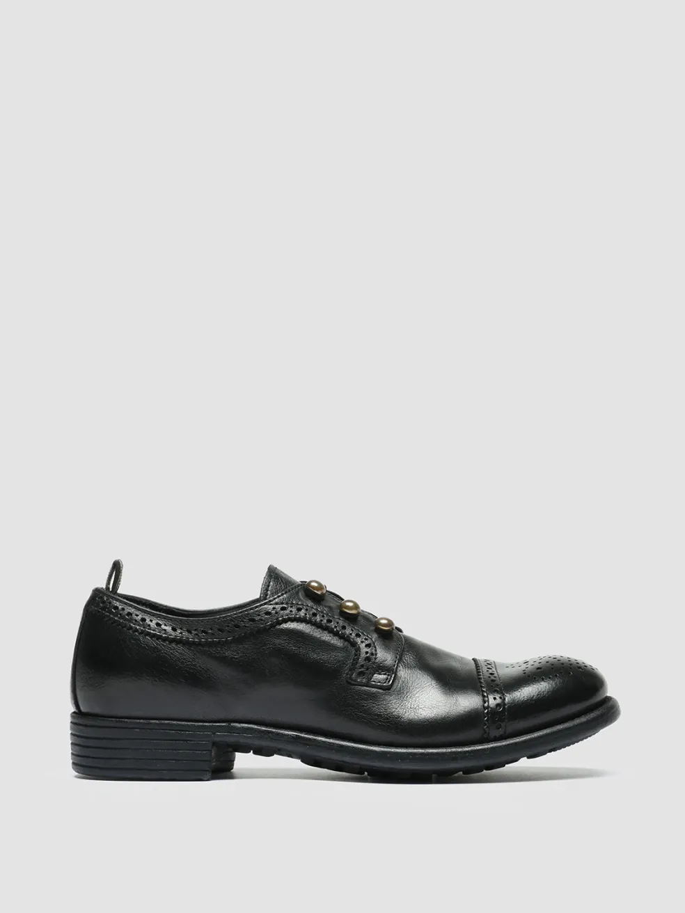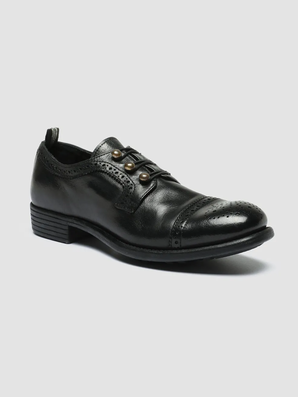 Our Calixte derby shoes stand out thanks to the vintage vibes silhouette in premium black leather. Expertly handcrafted by our skilled artisans they feature a refined brogue style front laces with gold-tone signature grosgrain heel loop tab and a grip caoutchouc sole.