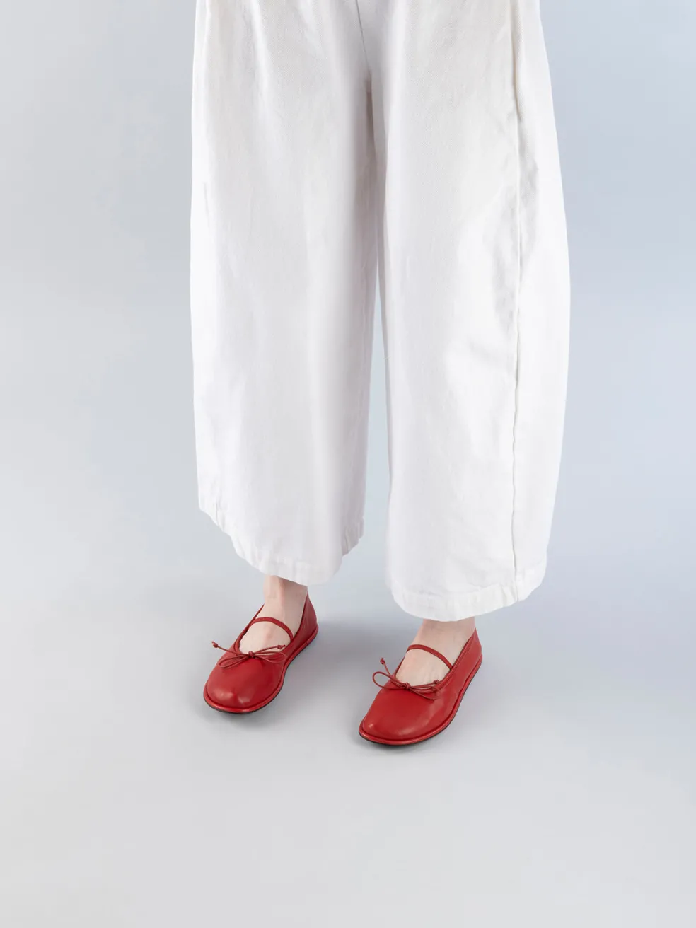 The Fontayne 001 ballerina shoes stand out as a piece of wearable art. This red leather model is crafted with the Italian ‘a sacchetto’ technique, where the upper lining is sewn around the last, before being attached. The result is unparalleled softness, flexibility and a comfortable glove-like fit.
