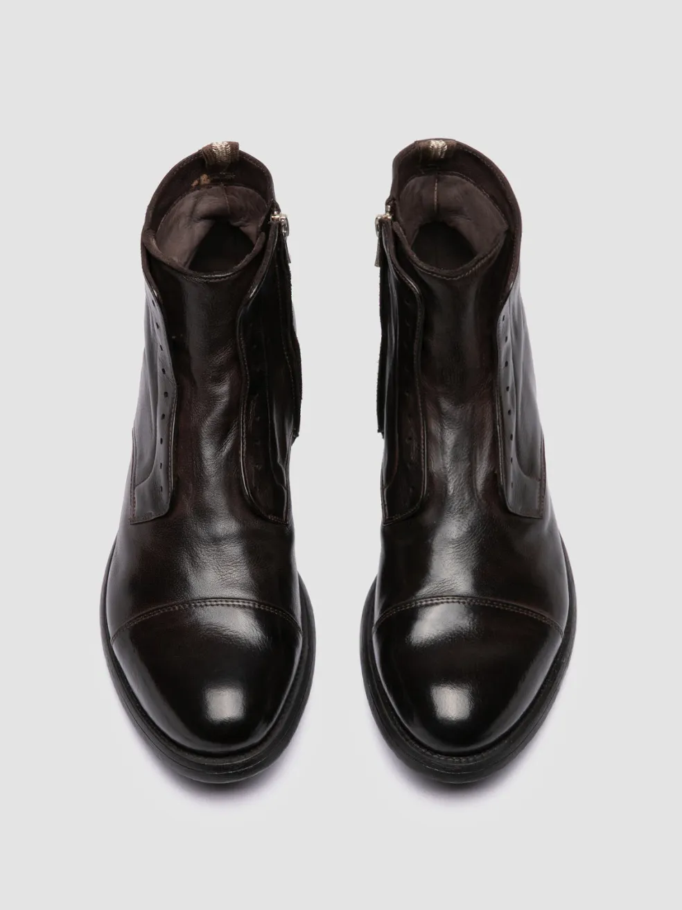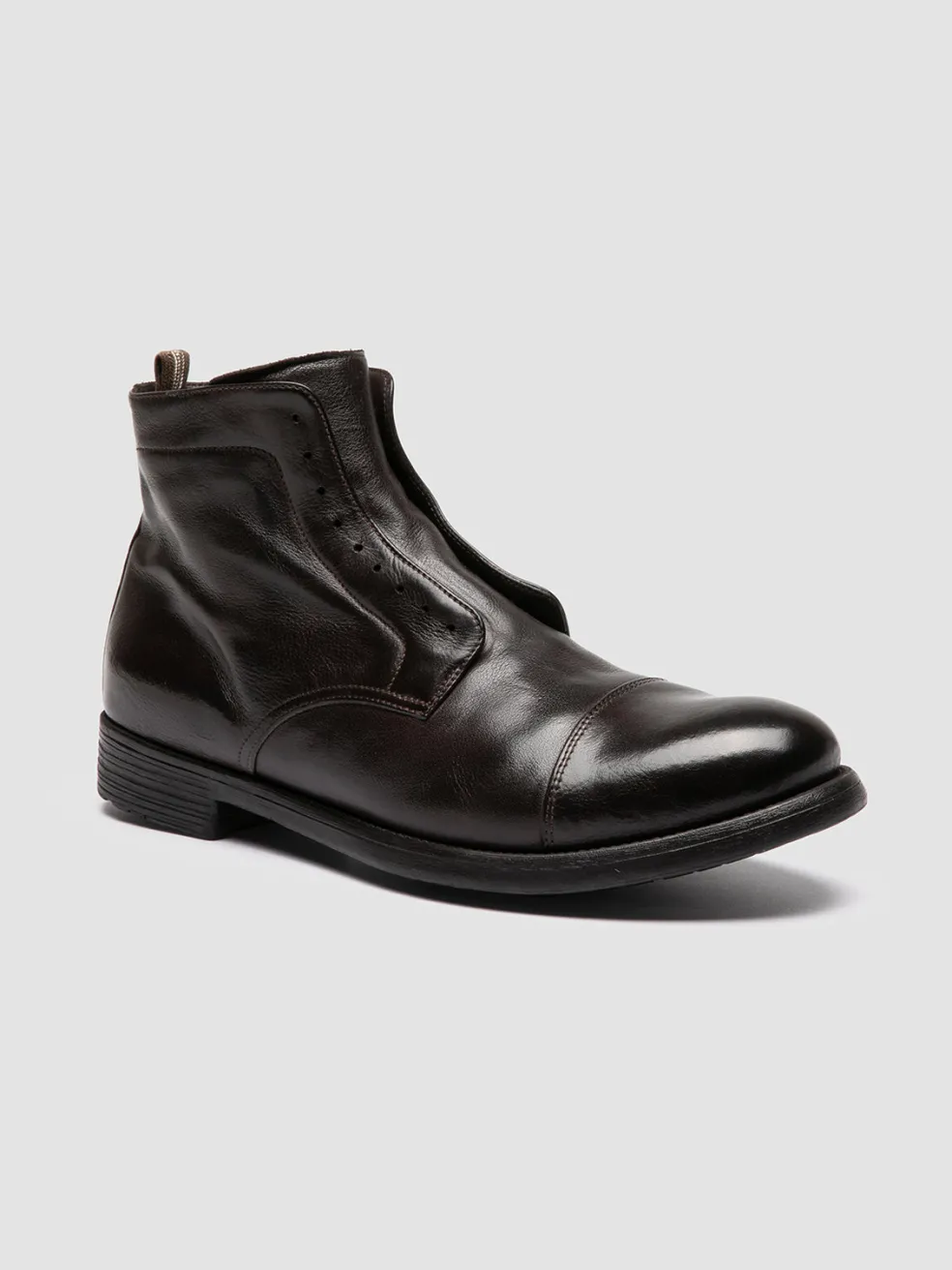 Handcrafted in Italy, the Hive 005 boots showcase a streamlined design in premium brown leather. A distinct feature is the absence of laces, for a sleek look complemented by a silver-tone side zip and a durable rubber sole.