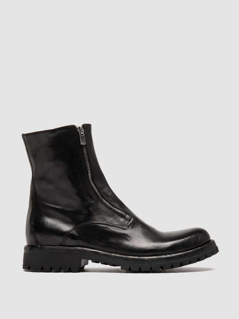 The Ikonic 012 boots stand out with a bold, dual-zip entry blending strong character and luxurious functionality. Handcrafted in Italy from premium black leather, the daring silhouette is set on a sturdy lug sole.