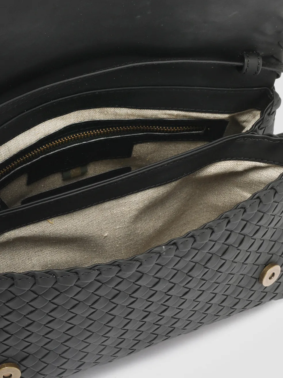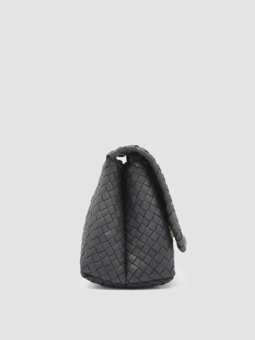 Handcrafted from finely woven black leather our OC Class bag perfectly balances elegance and functionality. It features an adjustable smooth leather shoulder strap, concealed magnetic fastening, fabric lining, two internal compartments with one zip fastened pocket and one open pocket and antiqued gold-tone metal hardware.