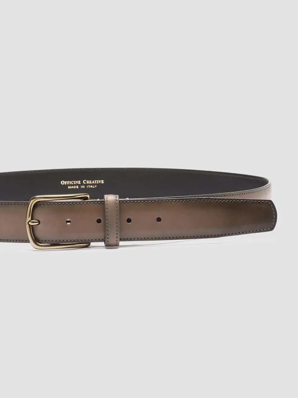 Sleek and versatile our OC Strip artisan belt is crafted from smooth hand-airbrushed leather in shades of taupe. It reveals a classic gold-tone metal buckle and logo lettering printed on the inside.