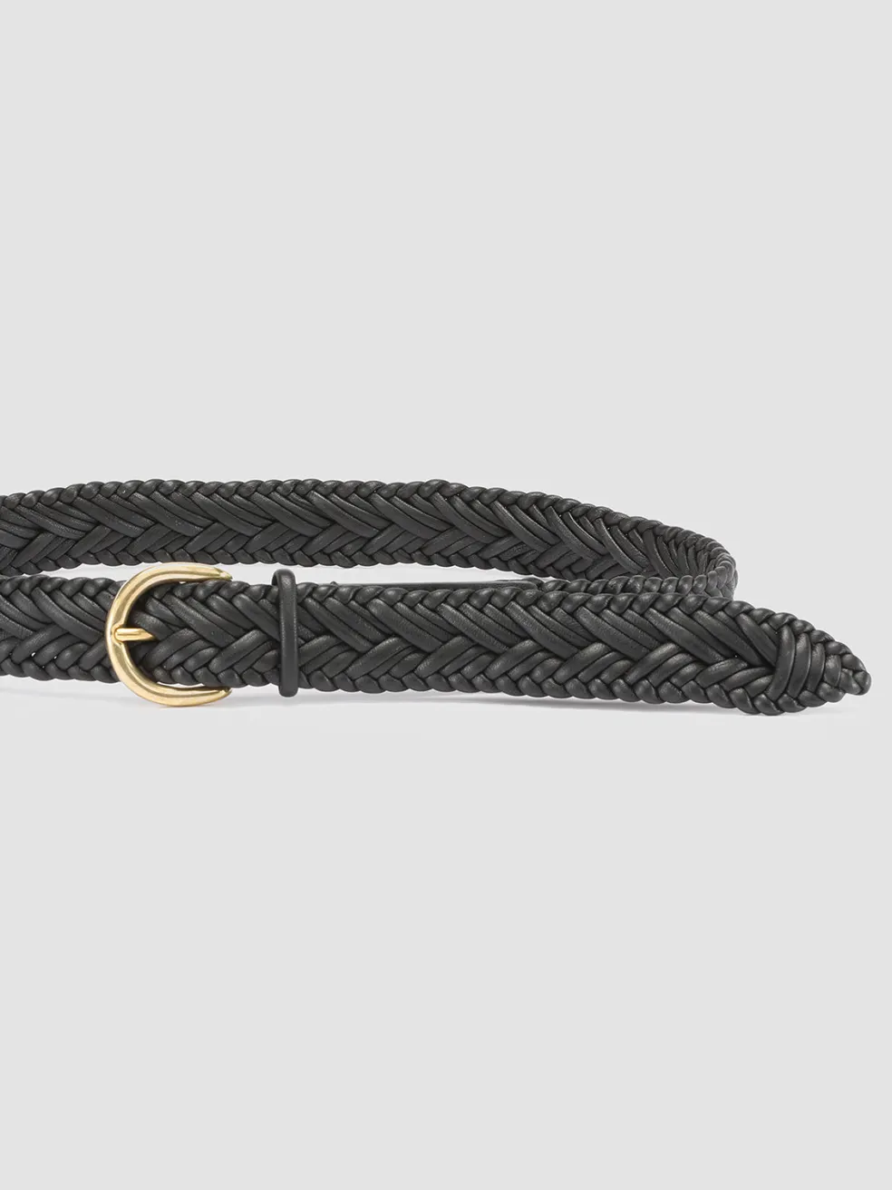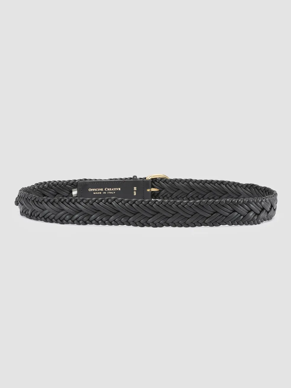 A refined woven design distinguishes our unique OC Strip handcrafted belt. Perfect for casual and formal styles it comes in a black tone and features a rounded gold-tone metal buckle logo lettering printed on the inside and signature grosgrain loop tab.