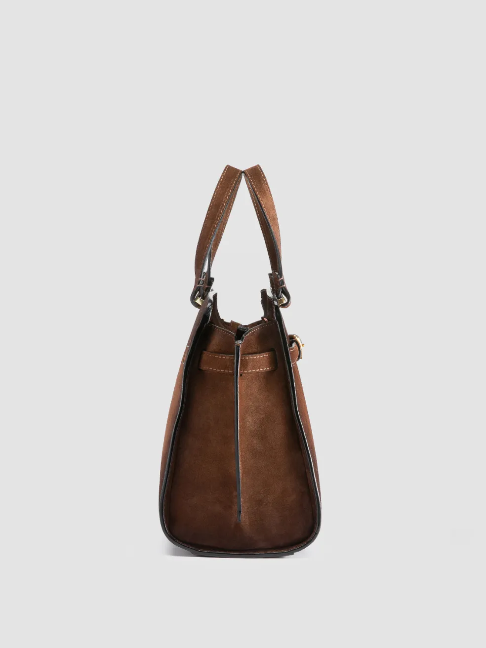 The Saddle 020 handbag showcases the timeless elegance of airbrushed suede, rendered in a warm brown hue. Handmade in Italy, it features a top handle, polished gold-tone hardware and a detachable shoulder strap.