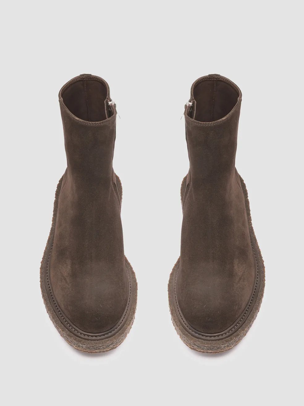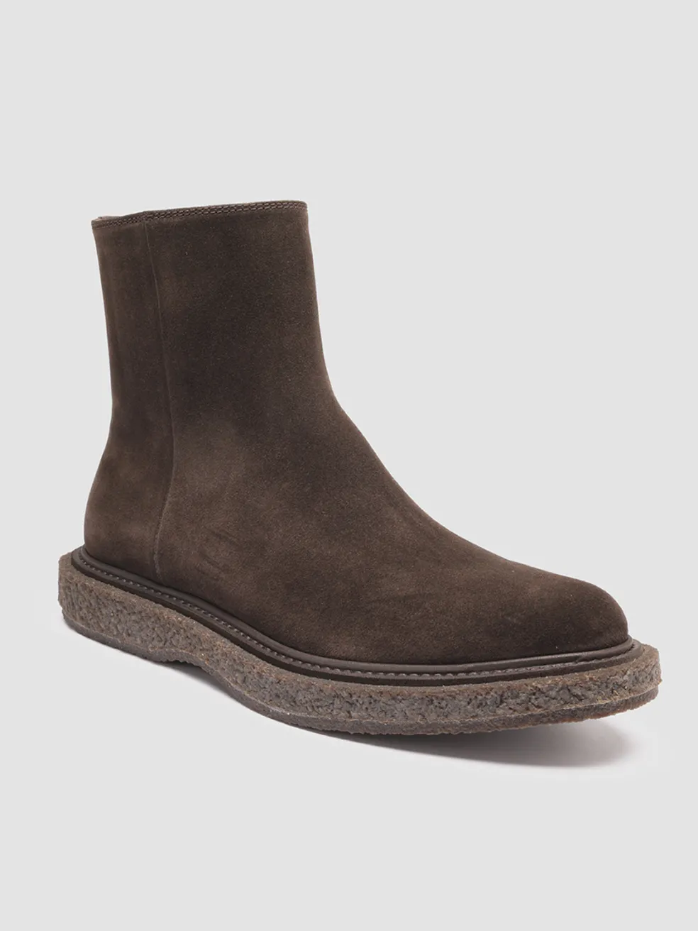 Gritty and truly versatile our zip Bullet ankle boots are expertly handcrafted from supple dark brown suede and defined by a tone-on-tone chunky crepe sole. They feature a rounded toe design flawless stitching.