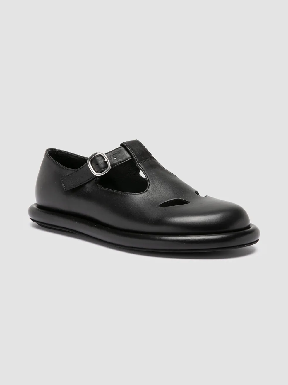 Handcrafted in Italy, the Estens 106 black T-bar shoes exude timeless elegance. The upper, with a minimal design with two holes and a strap closure with a metal buckle, sits on an extra-light EVA sole offering an exceptional sense of comfort. Perfect for those seeking freedom of movement without compromises.