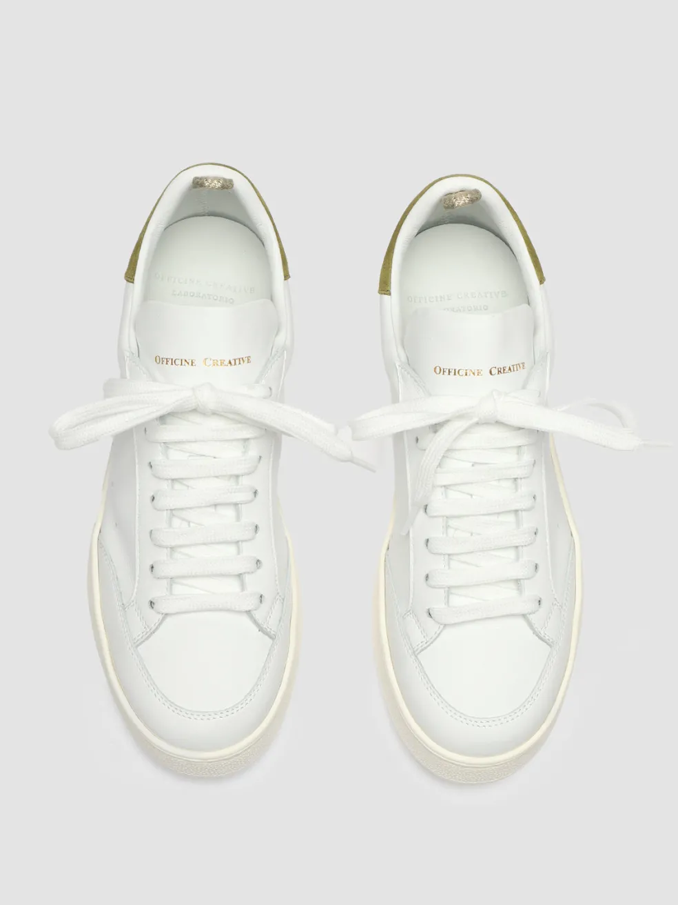 Great to complete your downtown looks around the city, our Mower artisan sneakers are handcrafted from white leather and marked by a green suede heel patch. They feature a rounded toe, front laces, embossed gold-tone lettering logo on the tongue and back, signature grosgrain heel loop tab and rubber sole.
