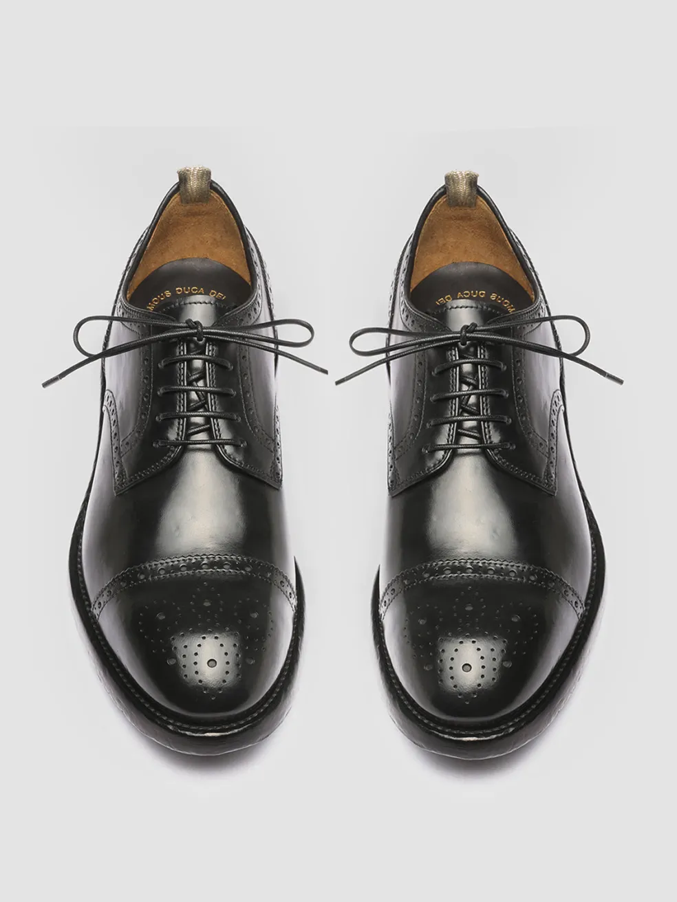 Unique thanks to the flawless airbrushed finish in shades of black our Temple derby shoes are handcrafted from fine smooth leather and reveal an elegant and timeless silhouette. They feature a rounded almond toe thin waxed laces signature grosgrain heel pull tab and a durable leather sole with rubber outsole.