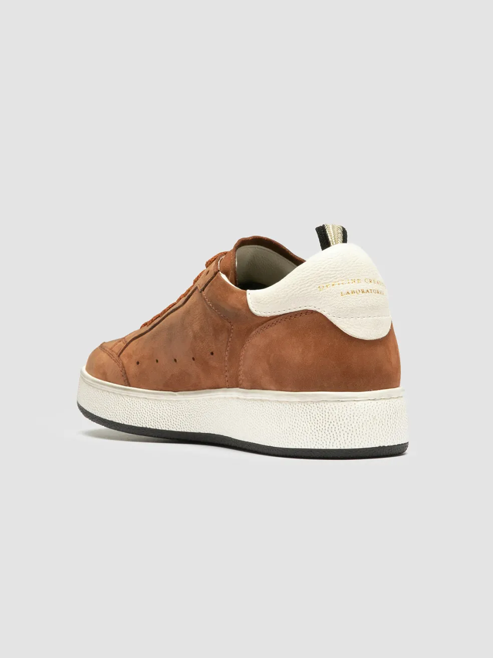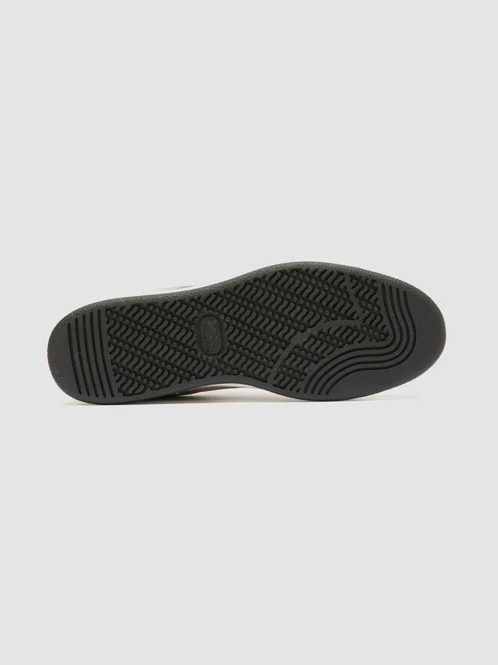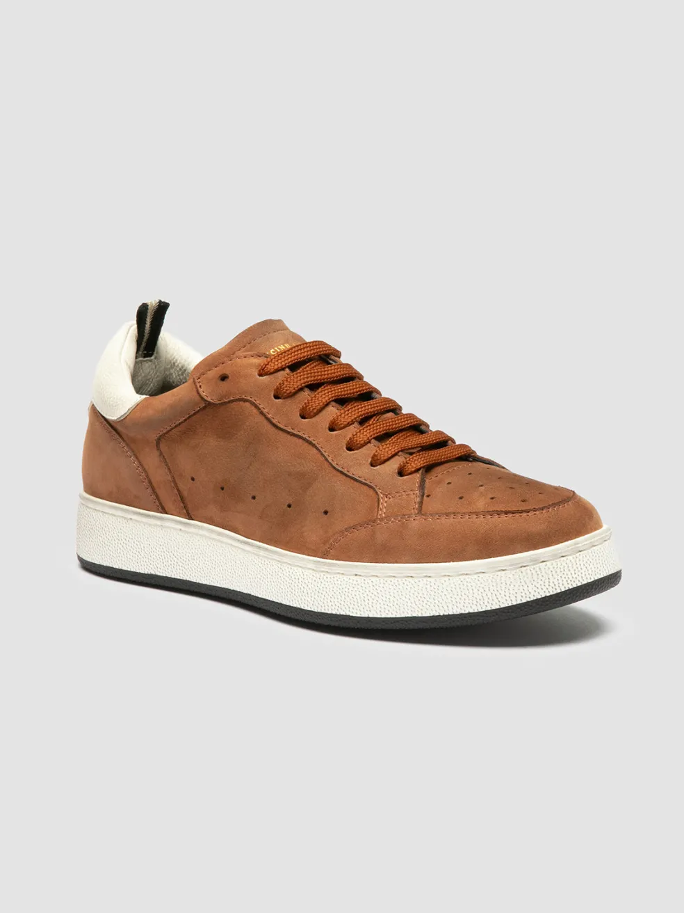 A nod to the taste of the OC clientele, the Answer 102 low top sneakers are handcrafted in Italy from nubuck leather. Extremely light, they feature an unlined brown silhouette with a white heel patch and a rubber sole.