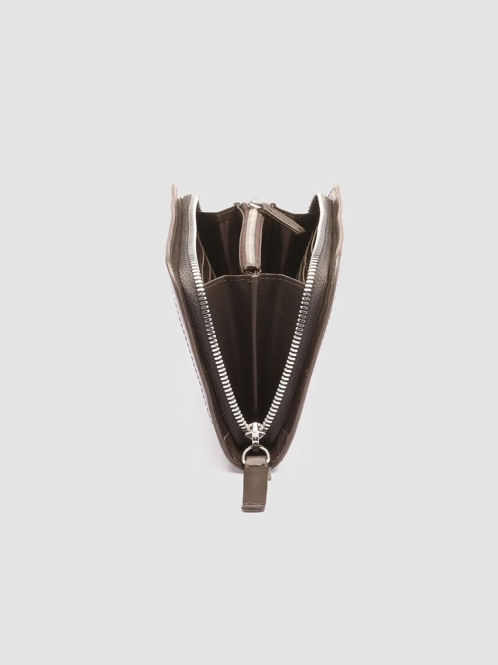 Elegance and practicality come together to perfection in our Bergé wallet in fine coffee-tone woven leather. It is expertly handcrafted by our artisans and reveals smooth tone-on-tone leather edges leather tab with embossed lettering logo at front zip around fastening two internal compartments with central zipped pocket card slots silver-tone metal hardware and iconic grosgrain side loop tab.