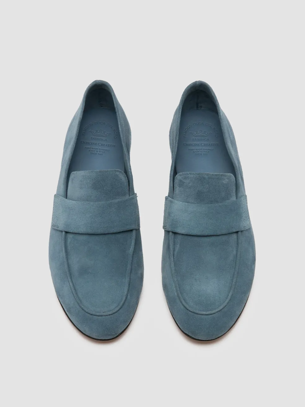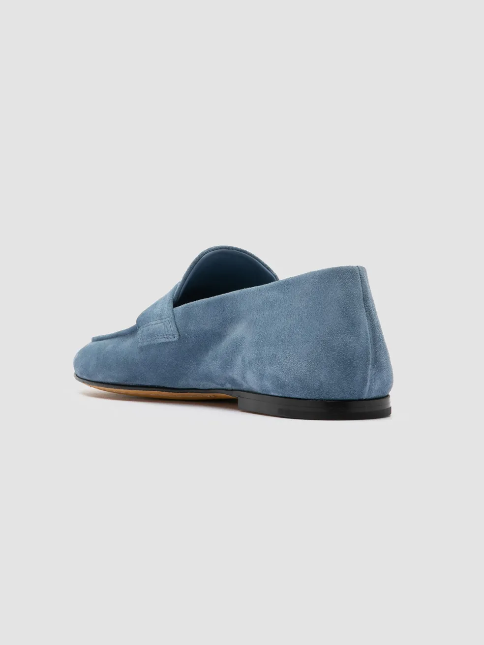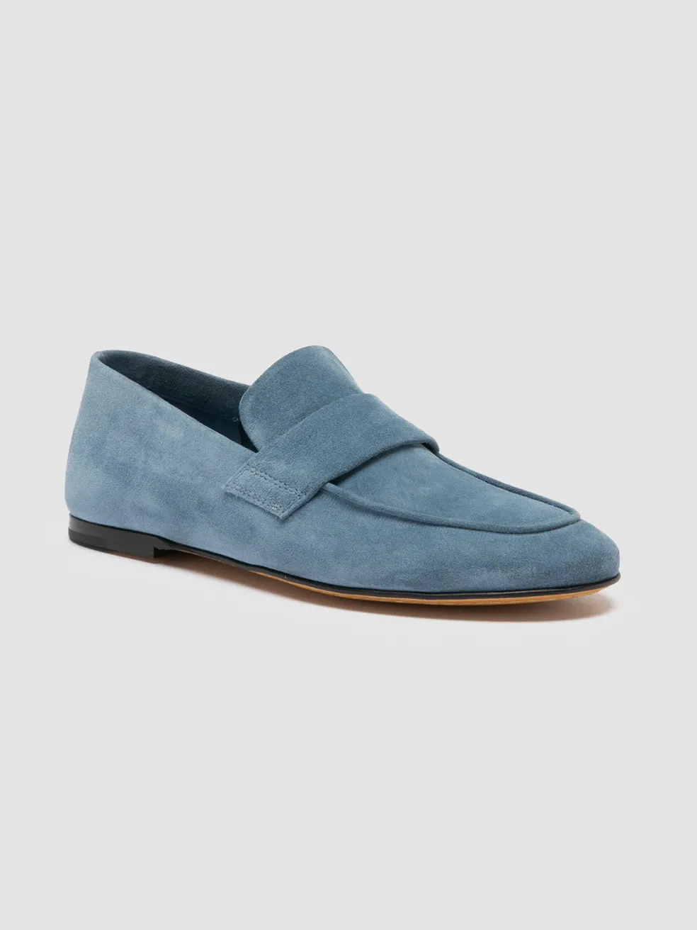 Ideal for a refined effortless style, our Blair loafers are handcrafted from supple blue suede. They feature a rounded almond toe, front strap and a flat sole with a very low heel.