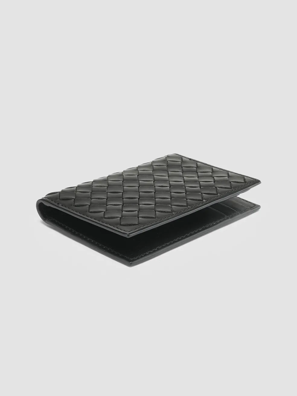 Expertly handcrafted from fine black woven leather on the outside and smooth on the inside our Boudin vertical wallet is sleek and practical. Inside it reveals six card slots two bill compartments gold-tone lettering logo print and signature grosgrain loop tab.