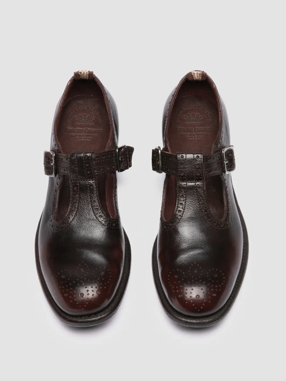The Calixte 071 T-bar shoes exude a retro-inspired sophistication with a contemporary edge. Handcrafted in Italy from brown leather, they feature brogue detailing, an adjustable buckle strap and a sturdy tread rubber sole.