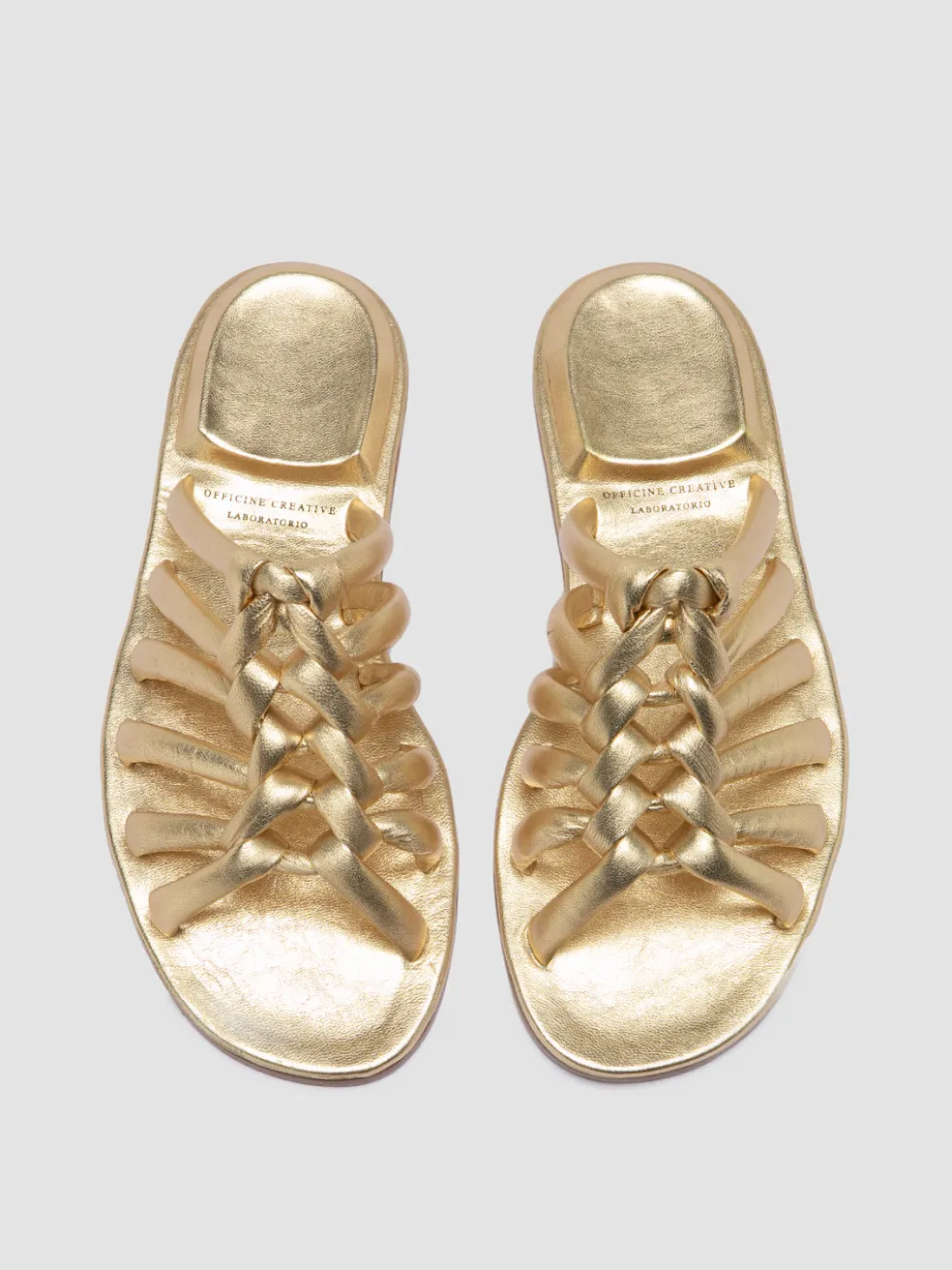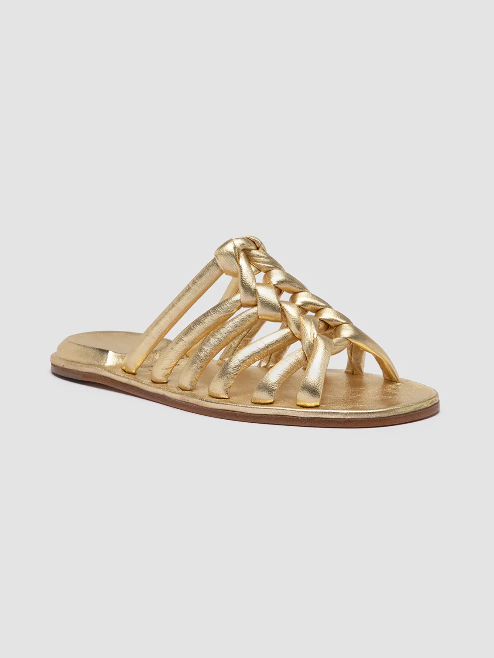 Monolithic design meets cutting-edge craftsmanship. Entirely made in Italy, the Cybille 016 gold sandals challenge conventions with a hand-woven leather upper and the iconic inverted heel encased in nappa leather. Refined elegance and innovation in every detail, for a look that transcends trends.