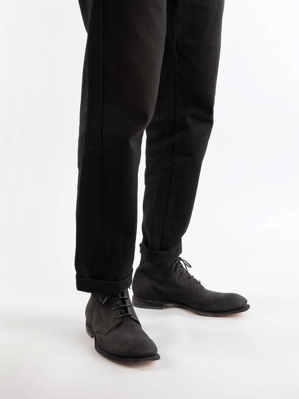 Comfortable lightweight and versatile our Durga ankle boots come in soft black leather. They set on a stacked leather sole with slightly protruding profiles and have a rounded toe thin tone-on-tone waxed laces flawless hand-stitched seams and a comfortable heel loop tab.