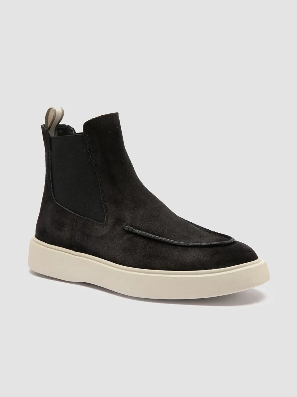 The Frame 003 boots blend a chunky contemporary style with luxurious minimalism. Handmade in Italy, the soft black suede silhouette is accented with few cuts to showcase the quality of the material and rests on a light EVA sole.