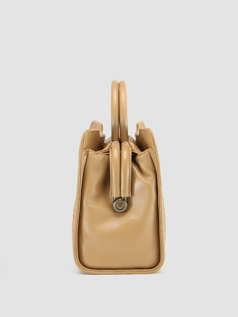 Handcrafted from the highest quality khaki woven leather our Helen bag reveals an elegant and timeless design. With two top handles in smooth leather and an adjustable and detachable shoulder strap, it can be worn, in hand, on the shoulder or as a crossbody. The fabric lined interior features a snap closure, internal leather panel with magnetic button, an inner zip pocket and antiqued gold-tone metal hardware.