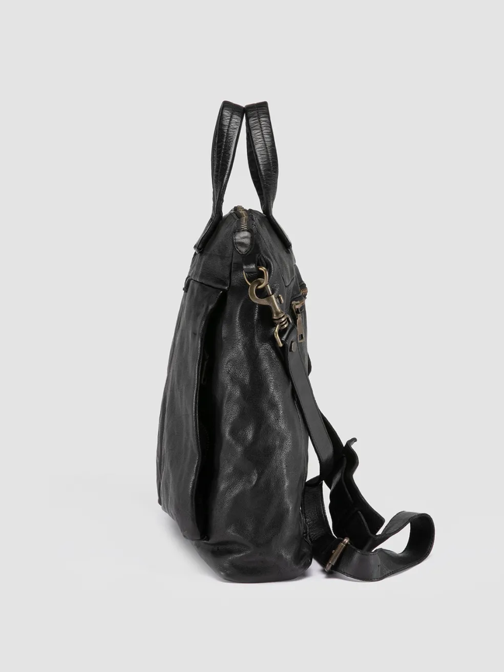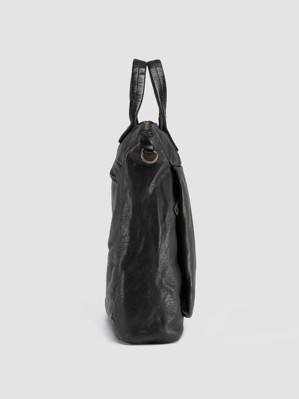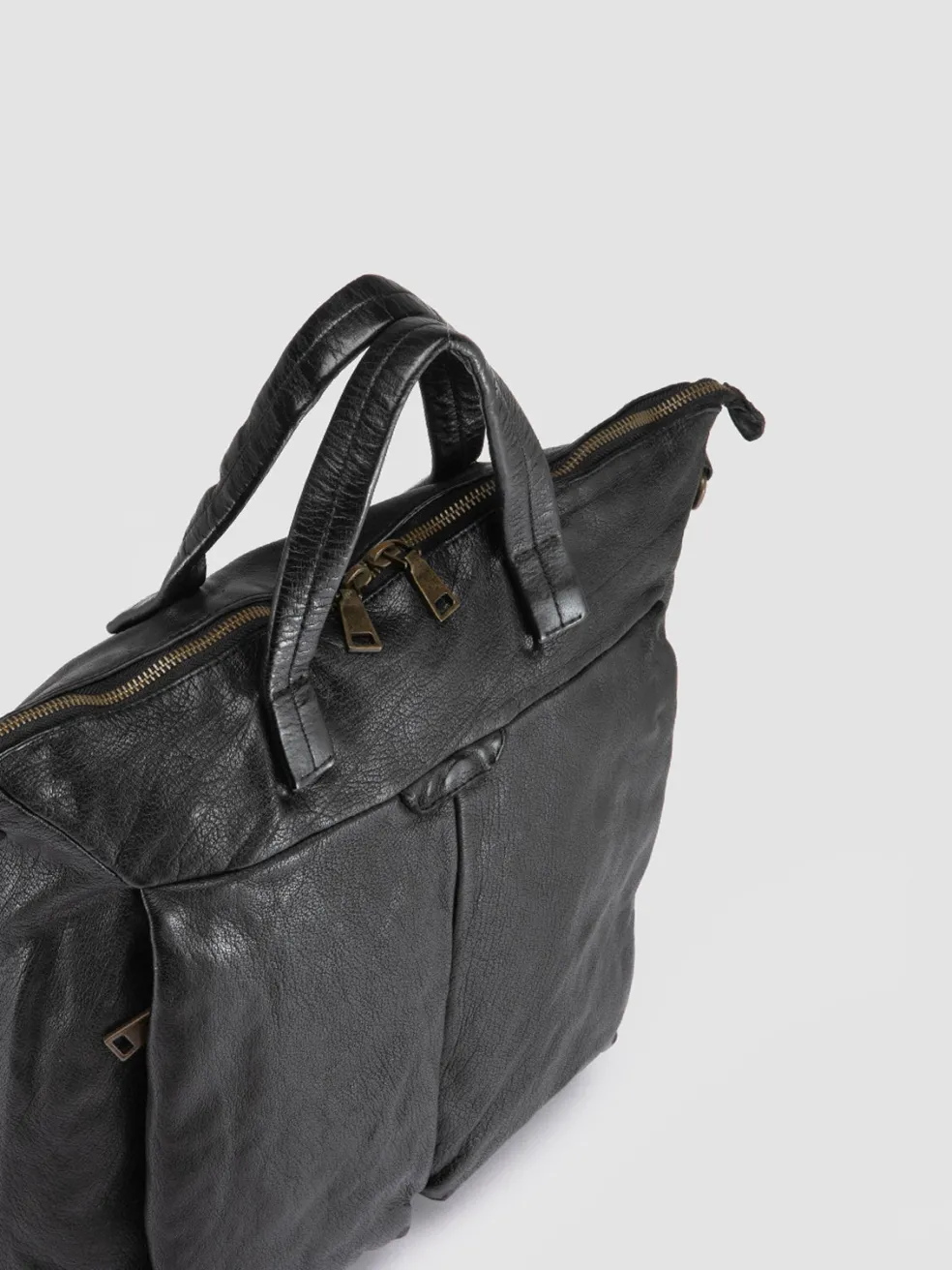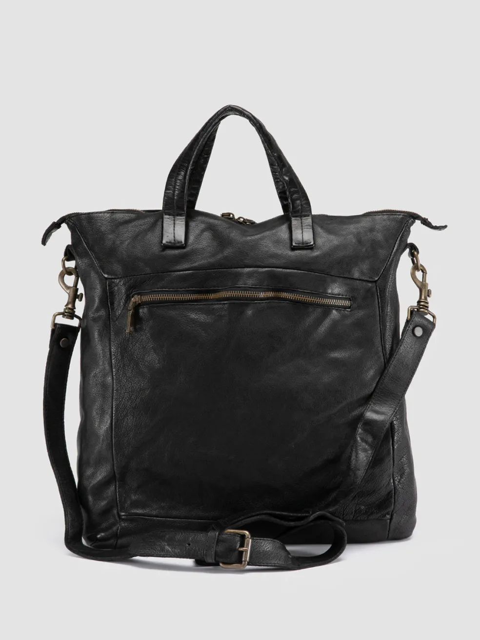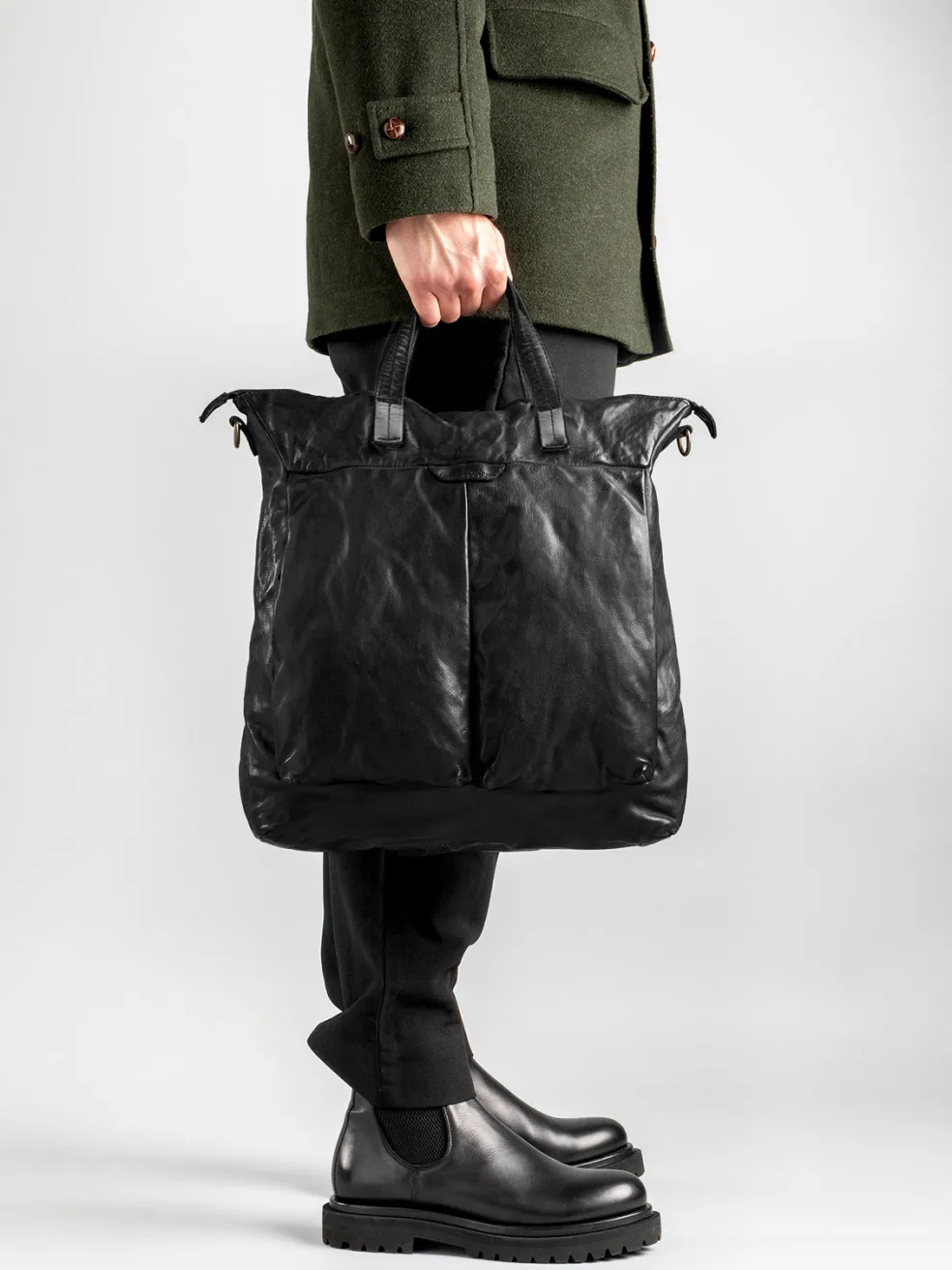 Pure functional sophistication, the Helmet 045 tote bag is handcrafted in Italy in supple black leather. This versatile piece features a spacious main compartment secured with an antique-brass finished zipper and handy exterior pockets. Dual top handles and an adjustable shoulder strap offer multiple carrying options.