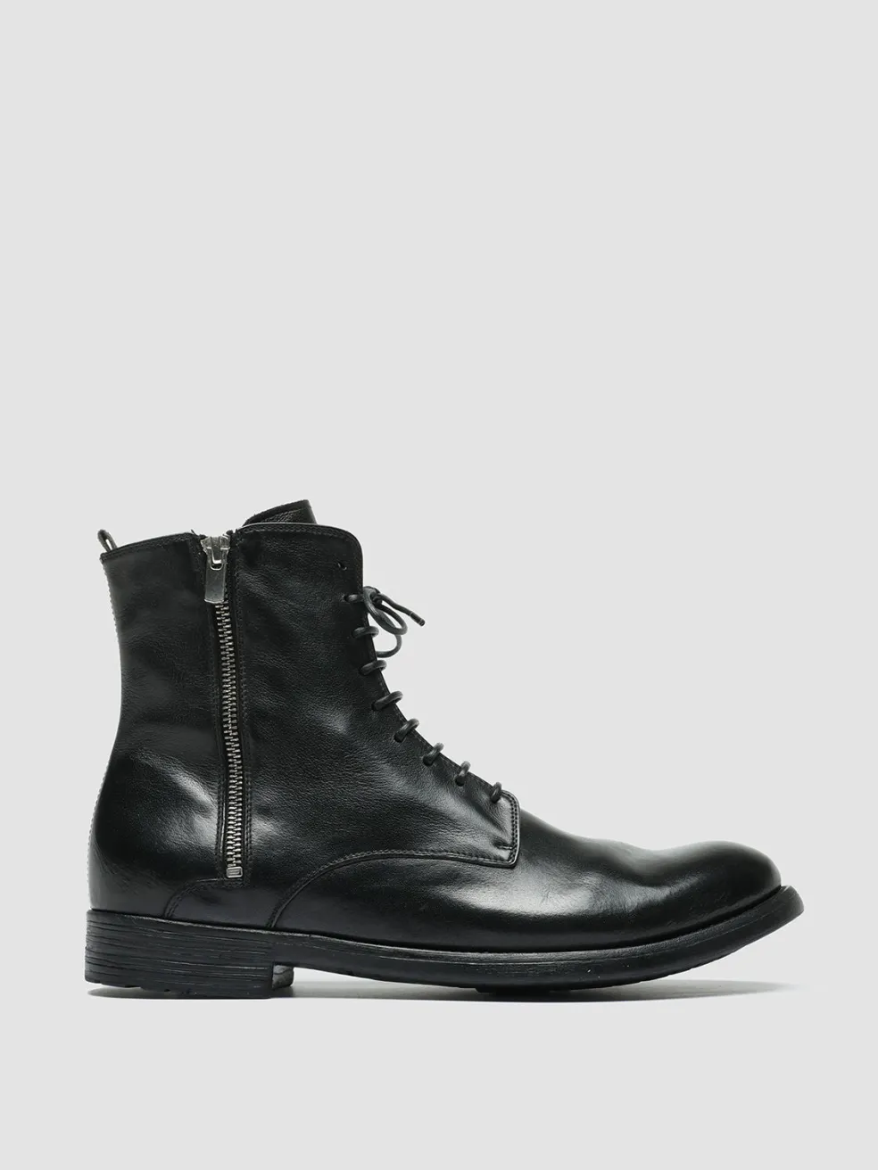 Embodying our commitment to quality and durability, these Hive 053 black lace-up boots are made from washed and brushed supple leather and piece-dyed for an authentic, lived-in feel. The side zips allow you to pull them on and off with ease.