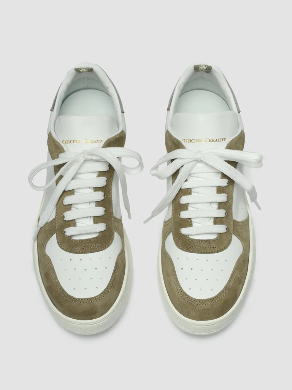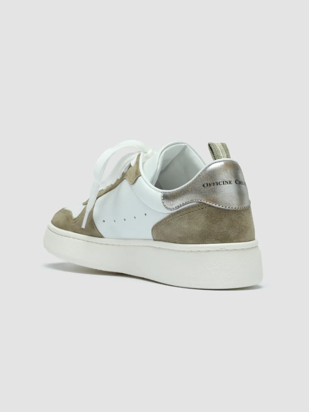 Perfect for everyday wear, our Mower 101 sneakers are made from panels of khaki, silver and white leather that’ll add a touch of colours to any outfit. The toecap and side perforations enhance airflow.