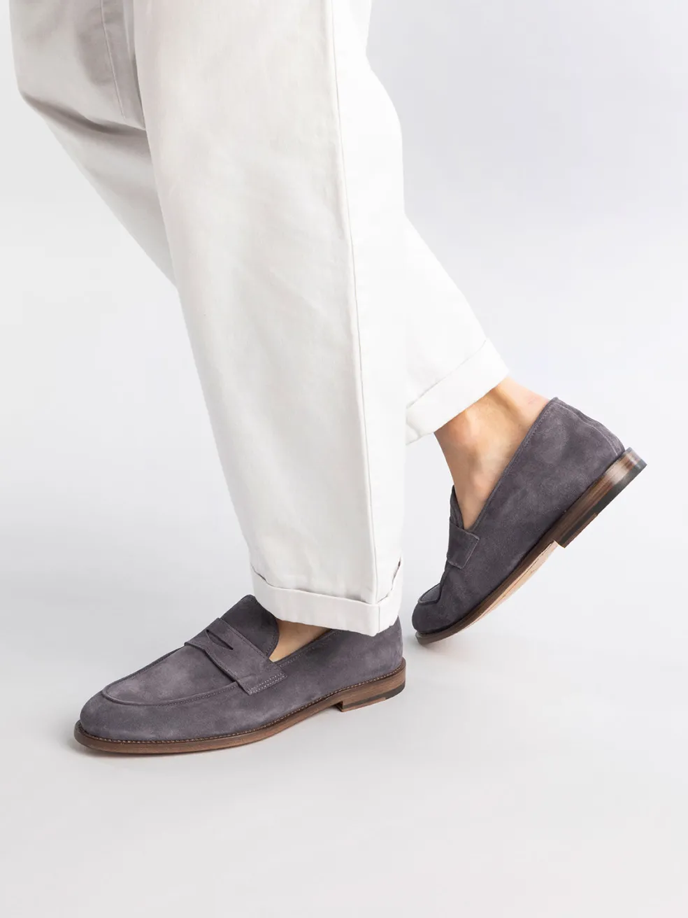 Handcrafted from fine navy blue suede, our Opera loafers blend comfort and…