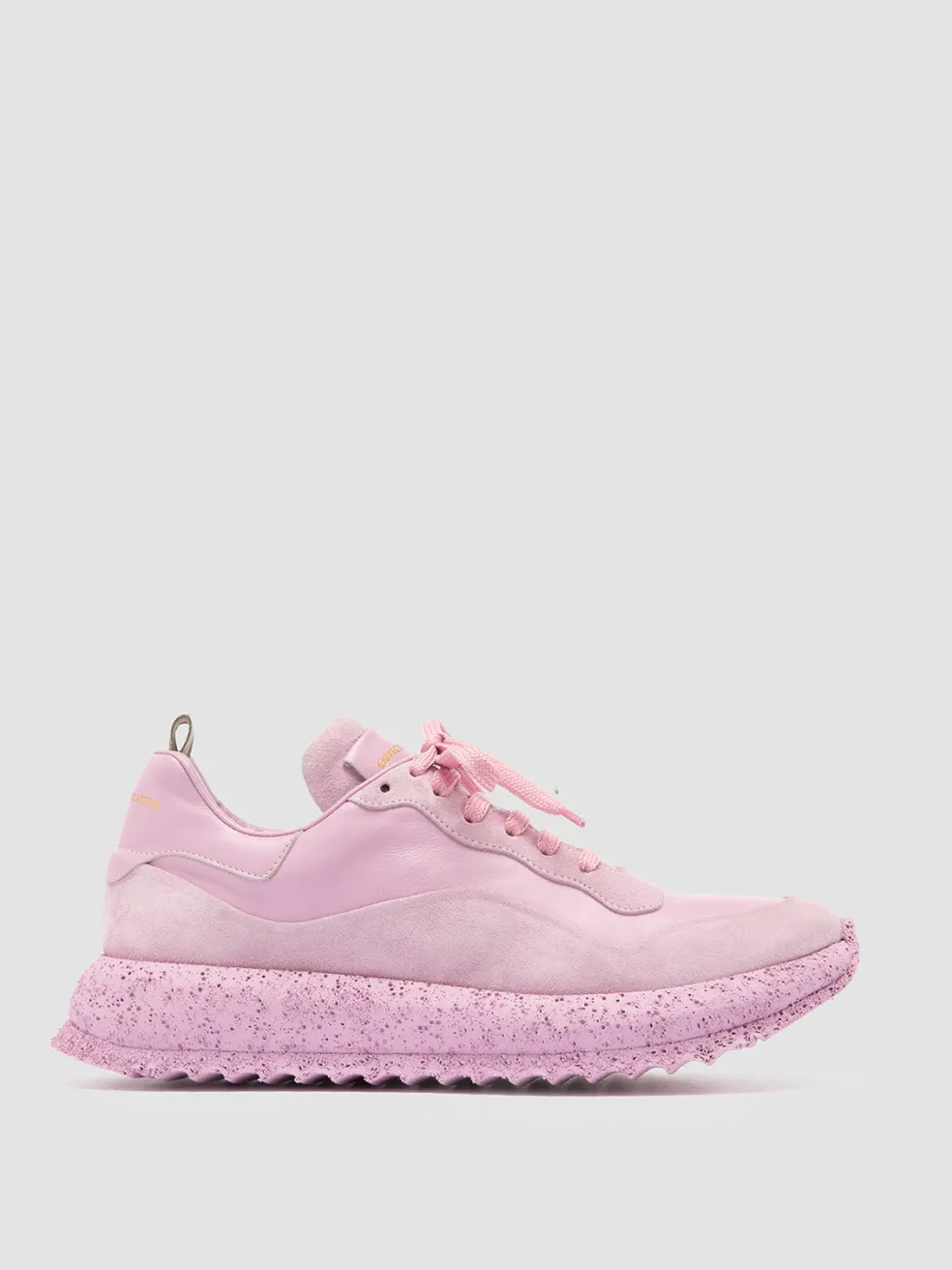 Handcrafted in Italy from vibrant rose leather and suede, the Race Rubrex 101 sneakers radiate a bold and energetic style. Featuring a matching extra-light Rubrex expanded sole, this model offers both standout aesthetics and ultimate comfort, ideal for those who dare to make a statement with their footwear.