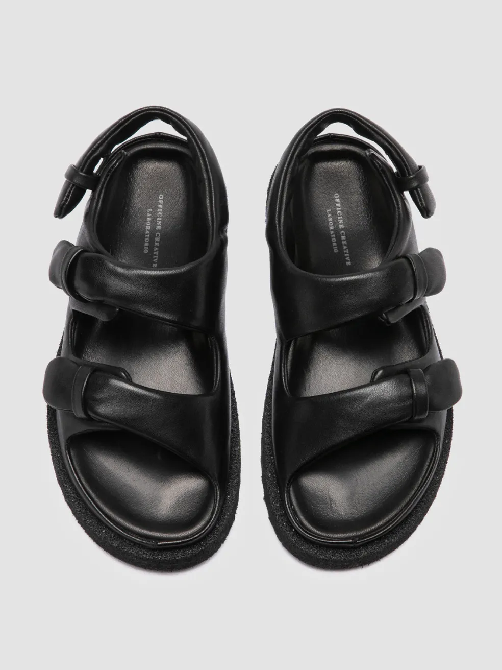 Embrace minimalist boldness with the Sands 102 sandals. Handcrafted in Italy in exquisite black leather, they present a monolithic design that commands presence, with clean lines and a dynamic loop closure. The Rubrex sole is a testament to durability, merging seamlessly with the model’s powerful aesthetic.