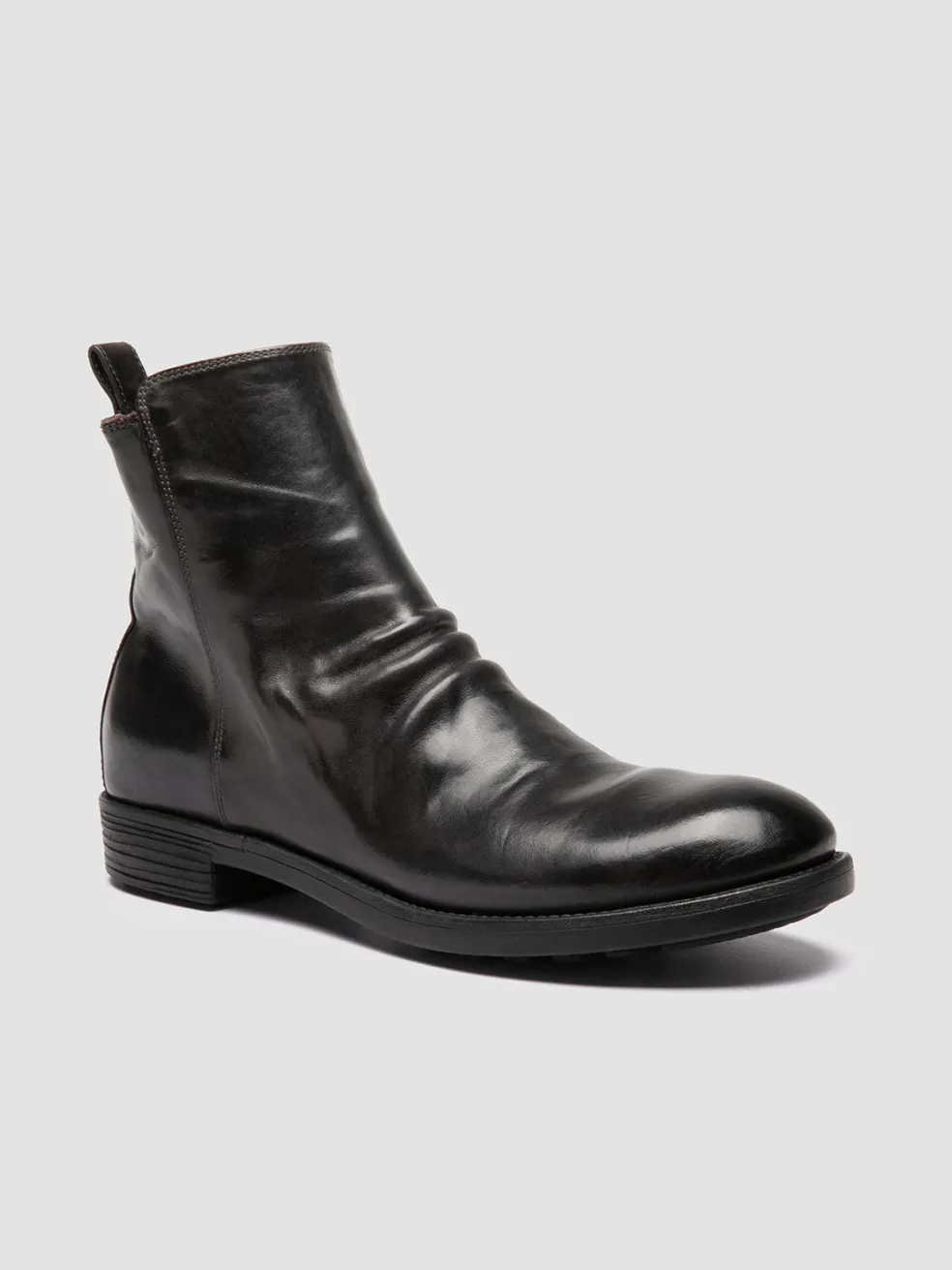 Handmade in Italy, the Sargeant 005 boots embody rugged sophistication, with a grey leather upper and a Blake construction for durability. A side zipper adds character, while the rubber sole mirrors the leather’s washed effect.