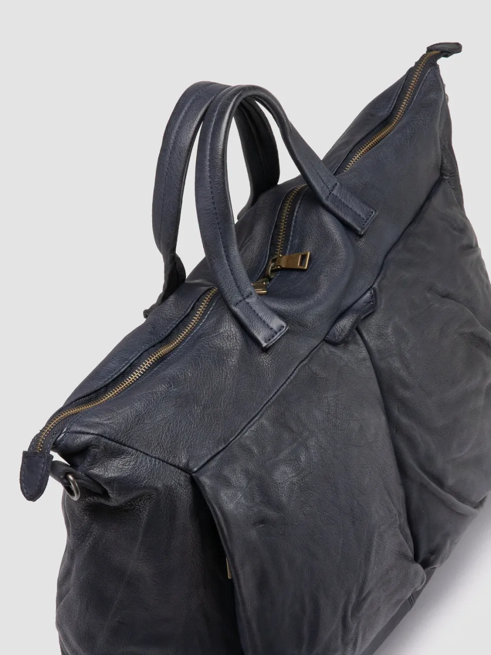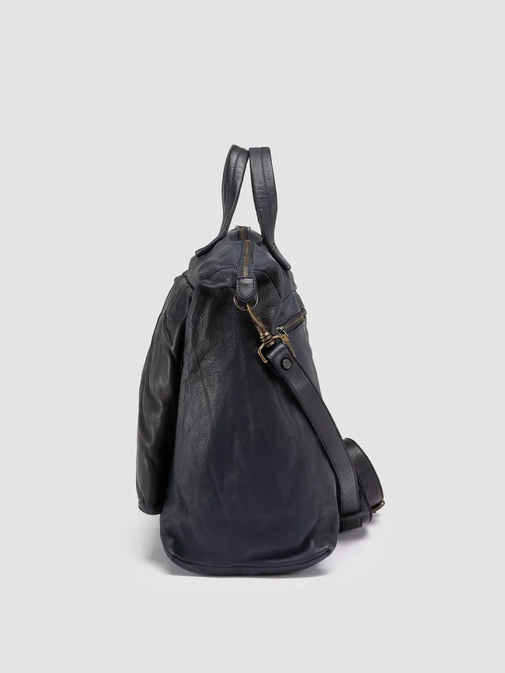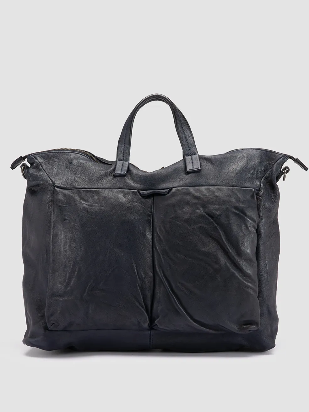 Embodying the essence of classic travel luxury, the Helmet 044 weekender is handcrafted in Italy in rich blue leather. The design features a spacious interior with multiple pockets, top handles and a detachable strap.
