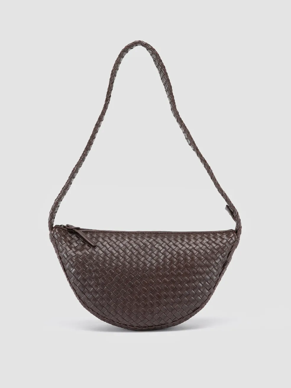 The OC Class 068 brown crossbody bag showcases traditional craftsmanship with a modern edge. The handwoven brown leather body offers a luxurious tactile experience, while the adjustable shoulder strap ensures functionality.