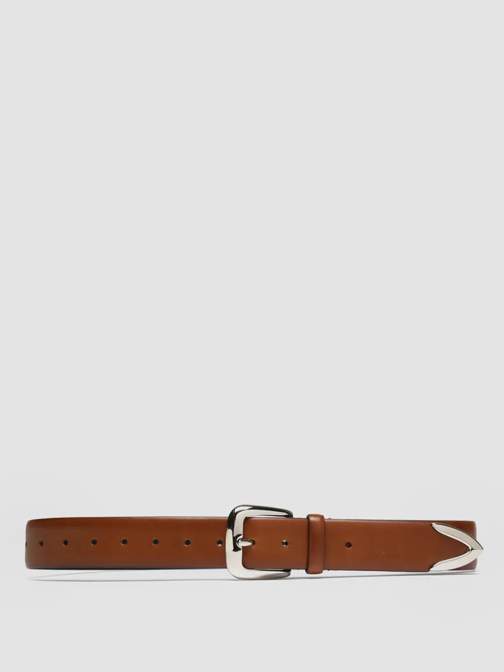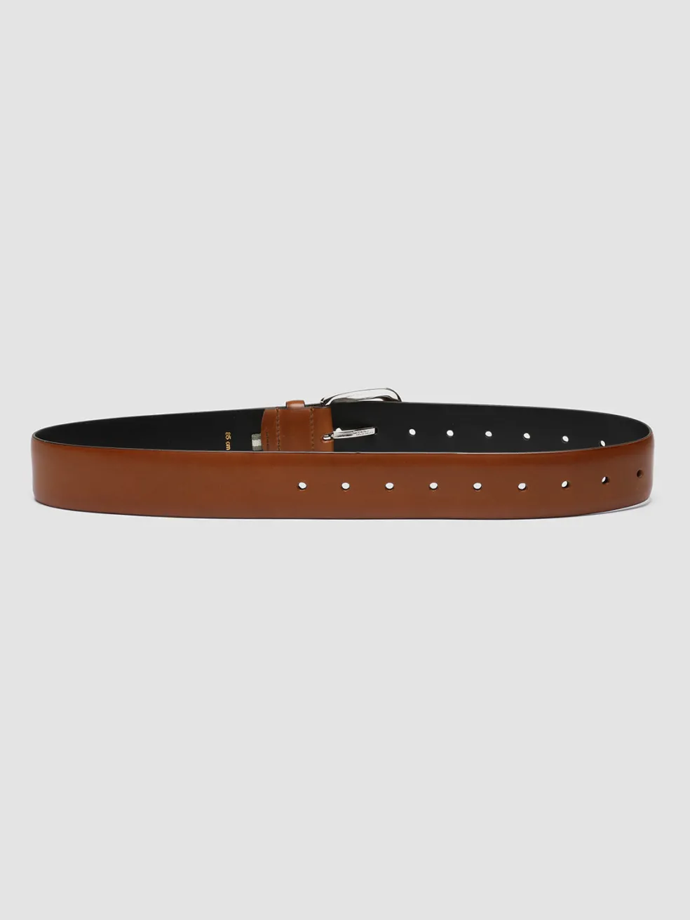 Our handcrafted OC Strip belt in smooth light brown leather stands out thanks to its shiny silver-tone metal rectangular buckle and V-tab. Great to style with tailored suits and sophisticated leisure looks, it features our golden lettering logo embossed on the inside.