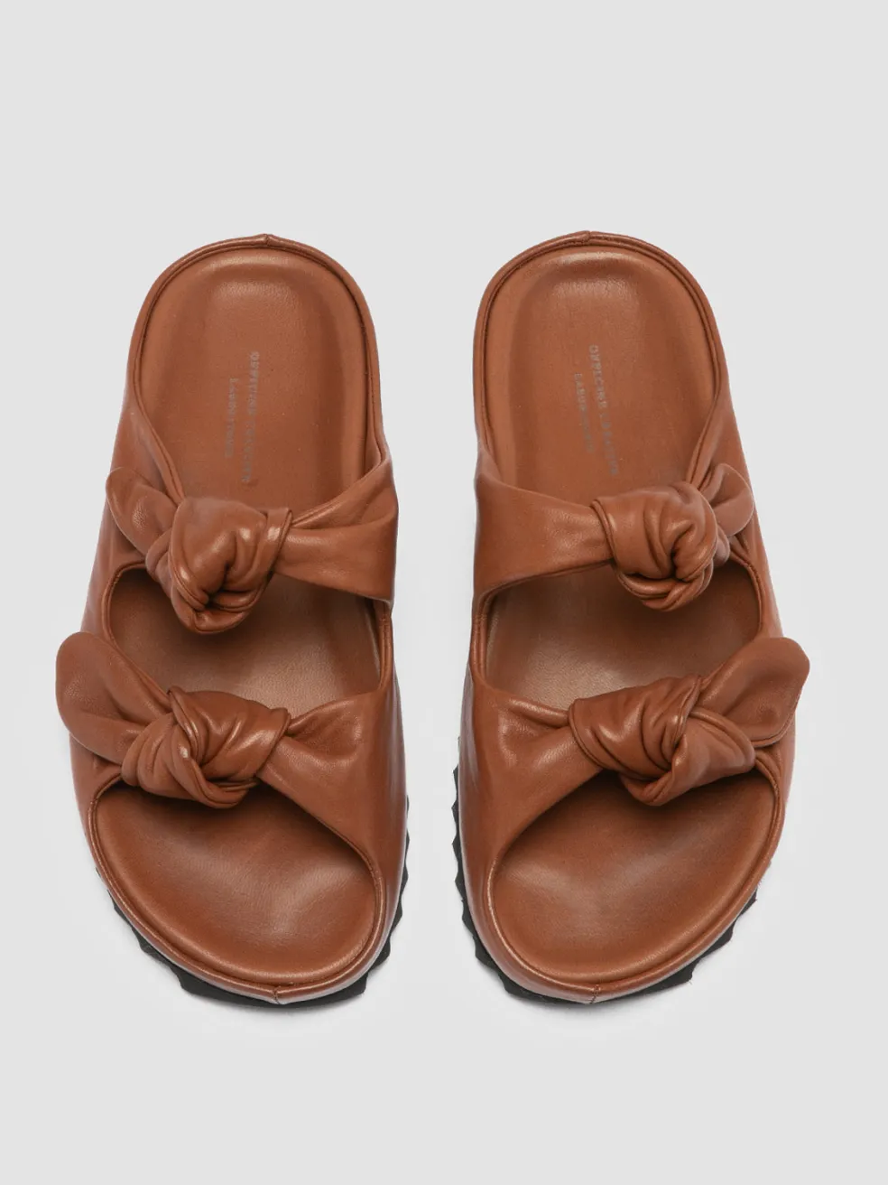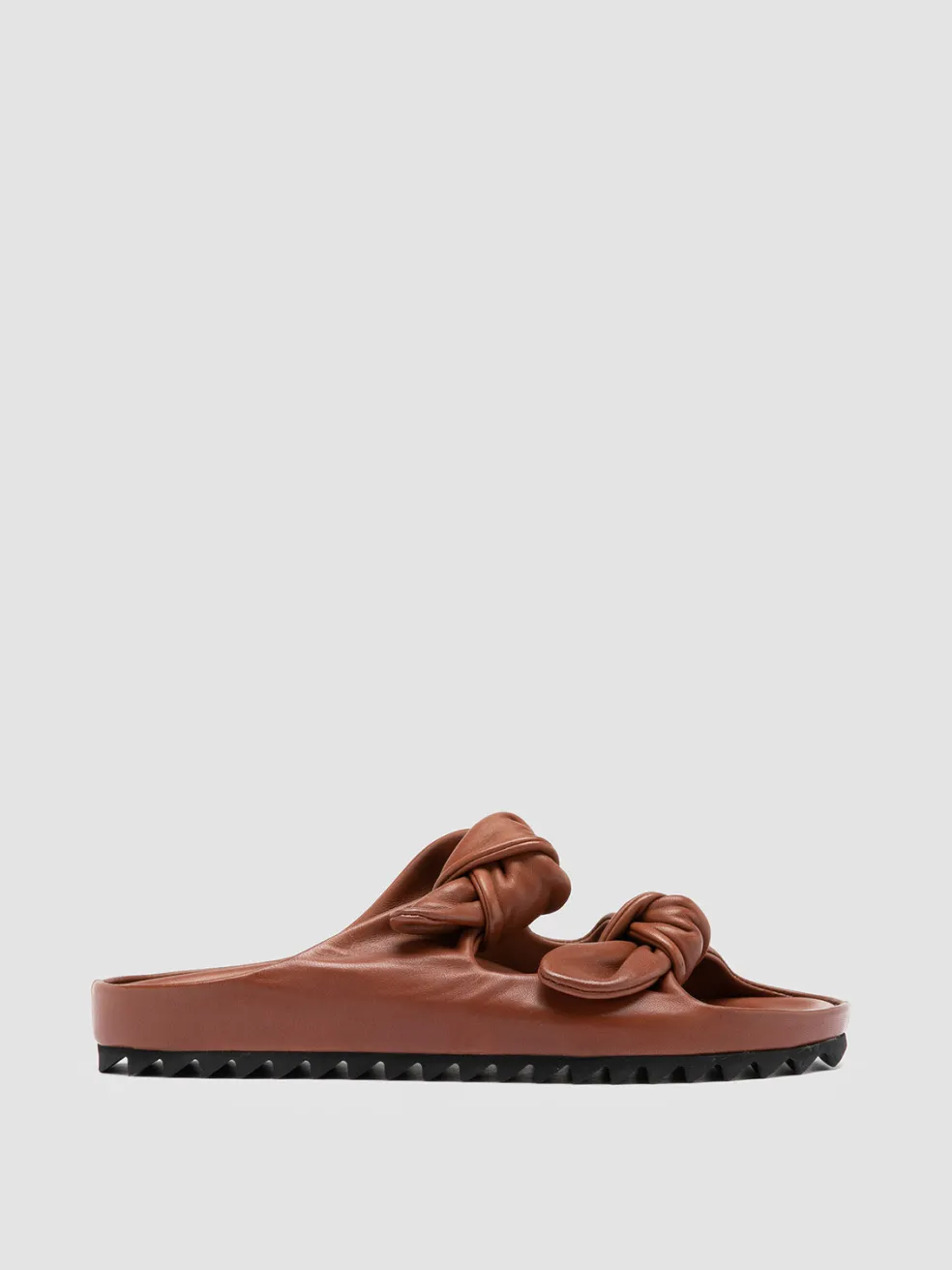 A clean, essential design and an incredible attention to detail characterize our Pelagie sandals. Handcrafted in Italy using the highest-quality vegetable tanned leather, these slides feature a rounded toe with two knot straps and a tread rubber sole, for a comfortable wear.
