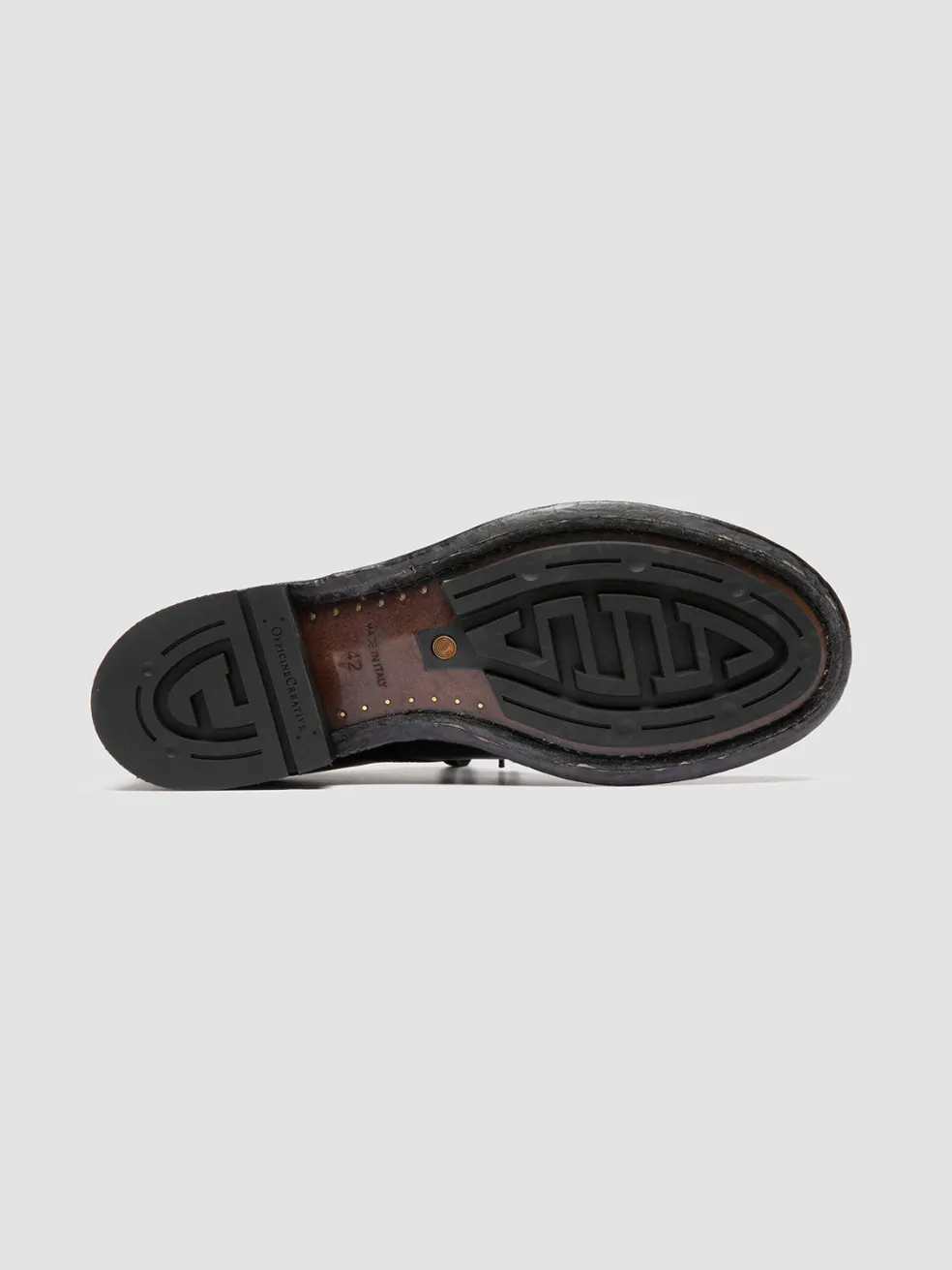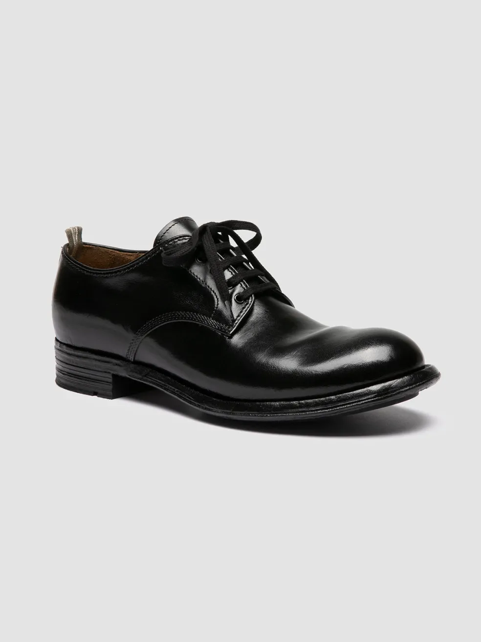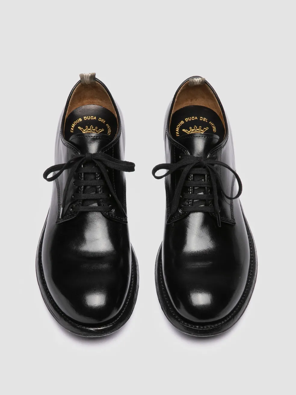 With a unique tanning process and a deep black hue, the Admiral 001 leather derbies redefine classic elegance. Handmade in Italy, the bold design and the double injection sole offer a robust appearance and durability.