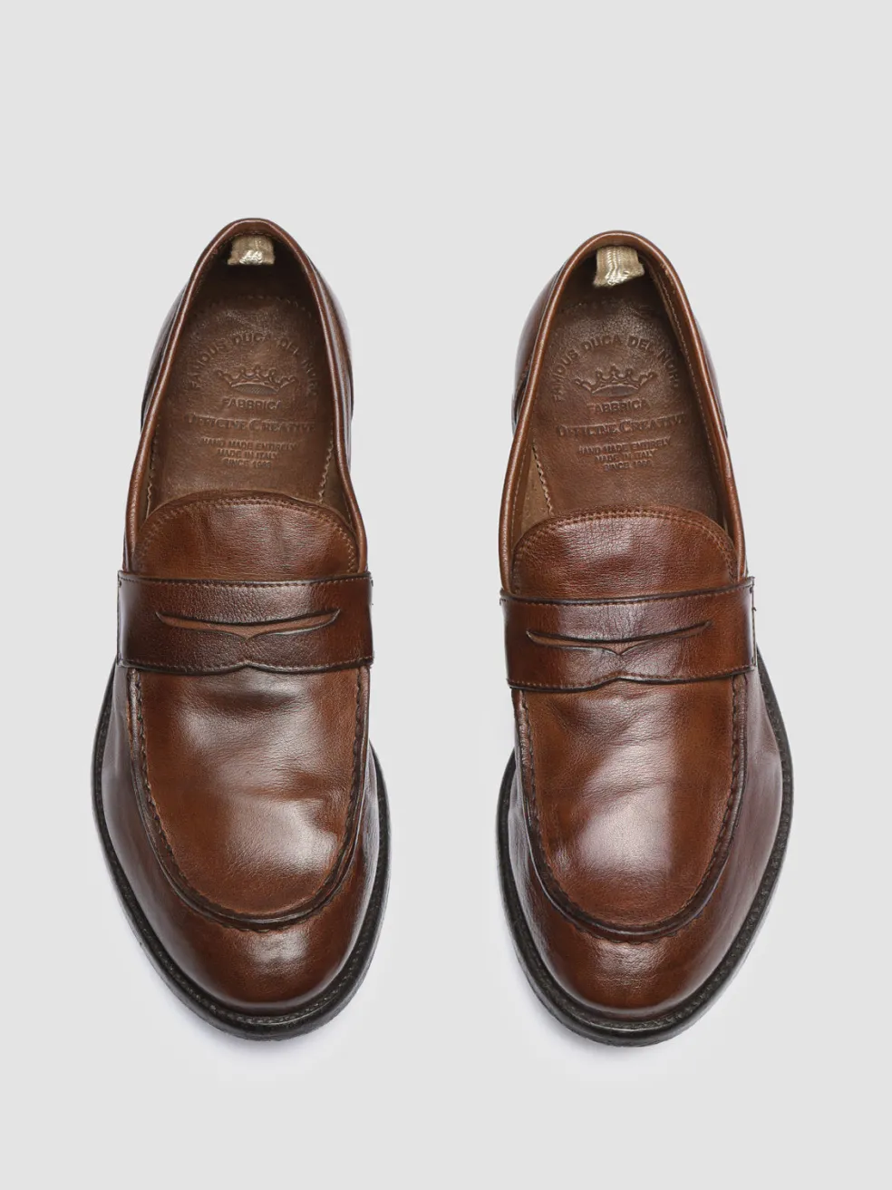 Arc penny loafers’ timeless silhouette highlights their craftsmanship and airbrushed finish in shades of brown. Crafted from premium quality leather they feature a rounded almond toe silhouette our signature grosgrain heel pull tab and a sturdy caoutchouc sole with a stacked heel.
