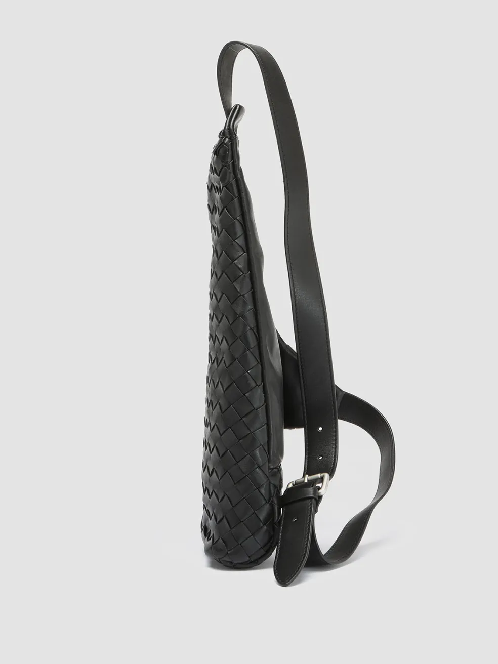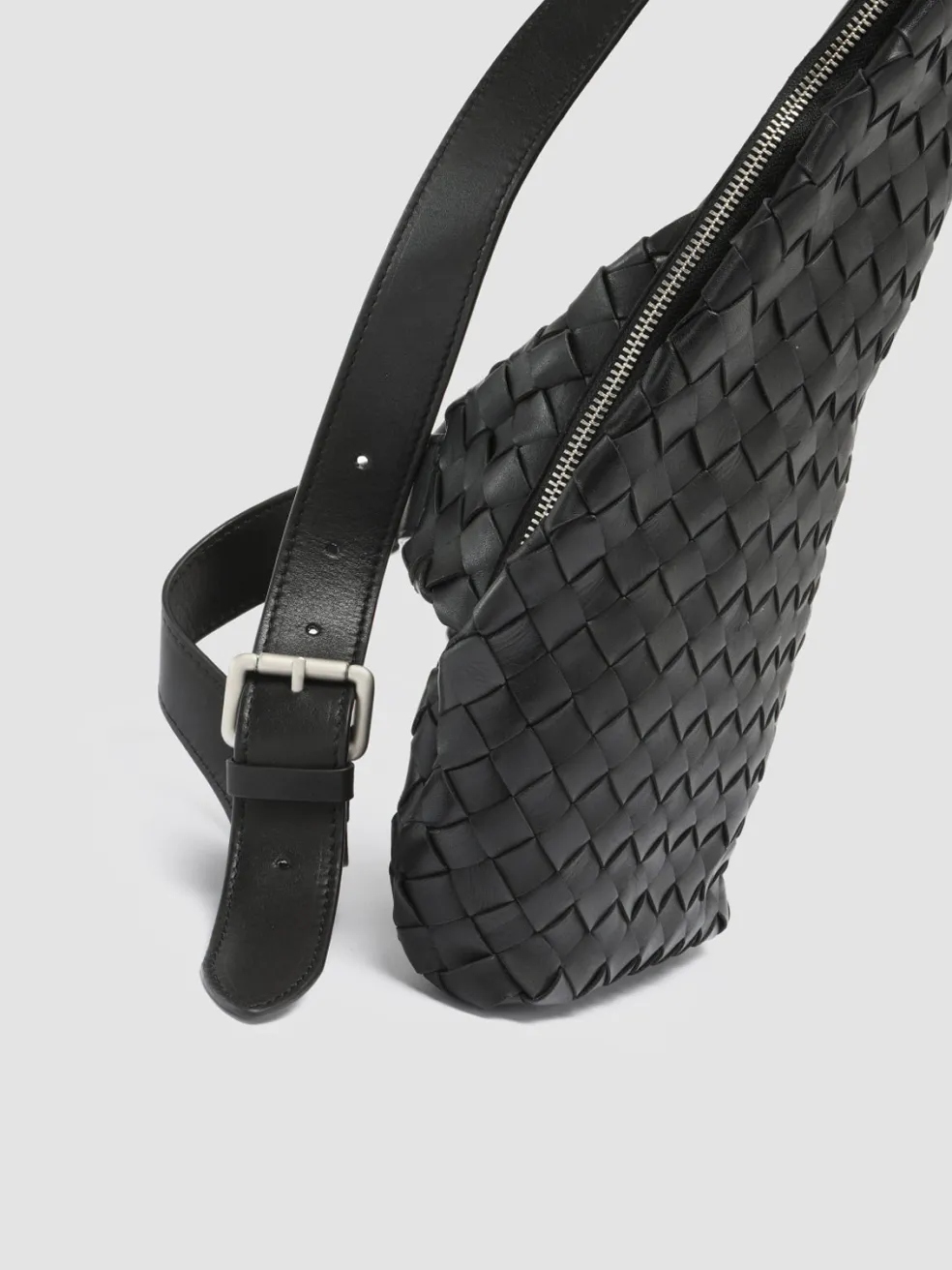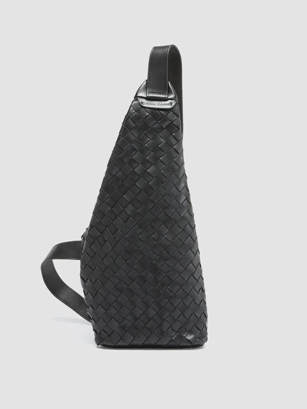 Our exclusive Armor one-shoulder backpack is the perfect accessory for a contemporary and sophisticated smart-casual style. It is handcrafted from fine black woven and smooth leather and features a triangular design main compartment closed by zip at the side adjustable shoulder strap silver-tone metal hardware and logo lettering embossed at the zip puller.