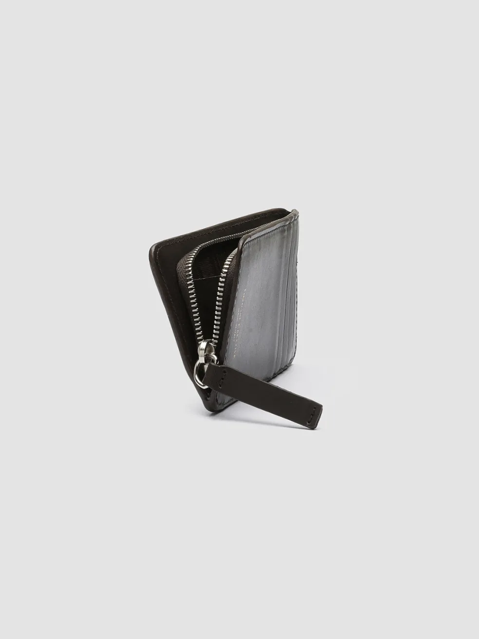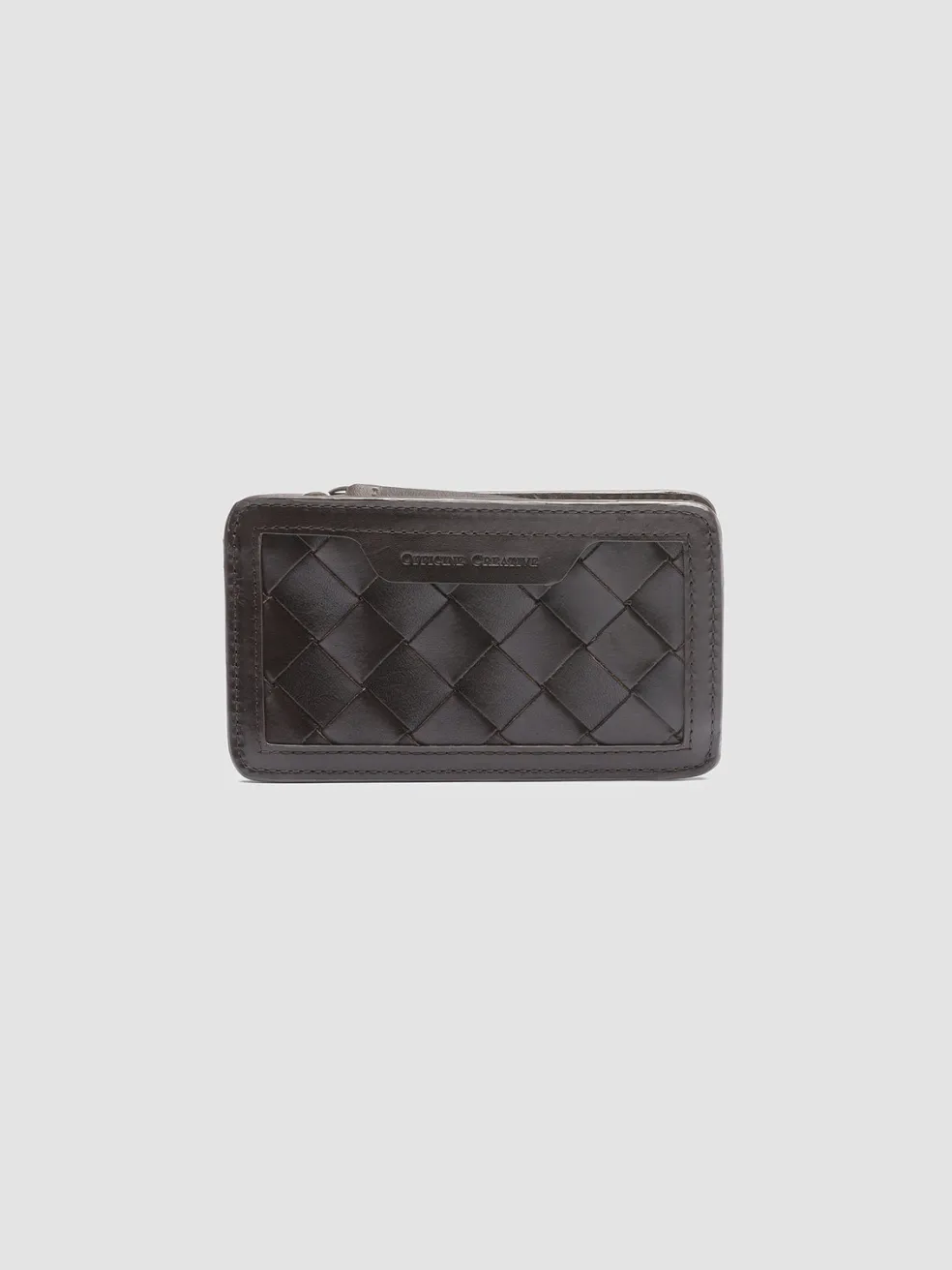 A flawless handcrafted design distinguishes our Bergé card holder in fine dark brown woven and smooth leather. Embellished by the lettering logo embossed at the front tab it has four card slots at the back with gold-tone logo lettering print and a silver-tone metal zipped compartment.