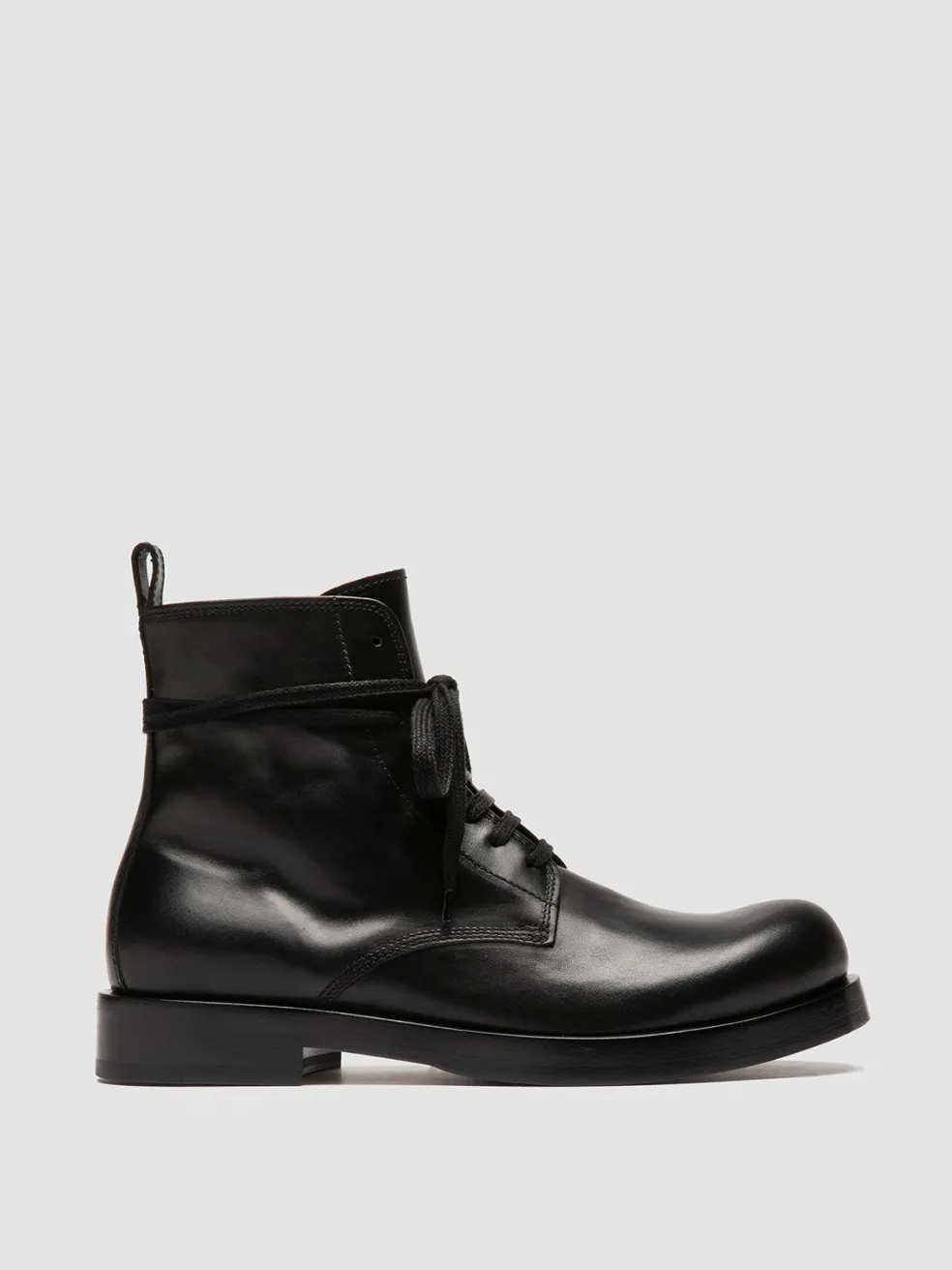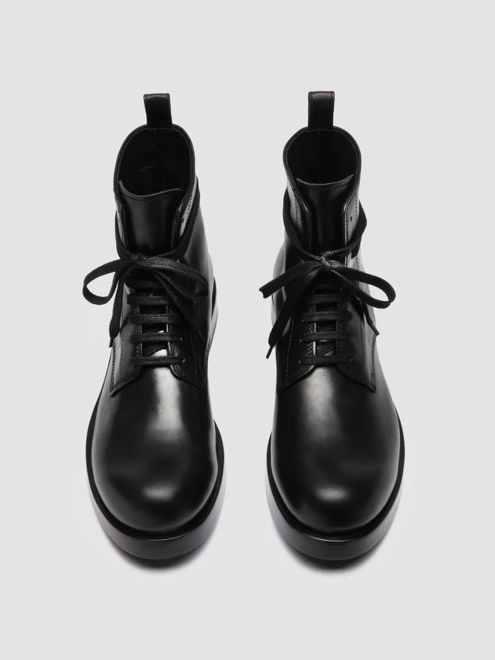 With a contemporary gothic allure, the Bulla 002 boots are handcrafted in Italy from premium black leather, featuring a polished lace-up upper that merges seamlessly with a rubber-injected sole for resilient wearability.