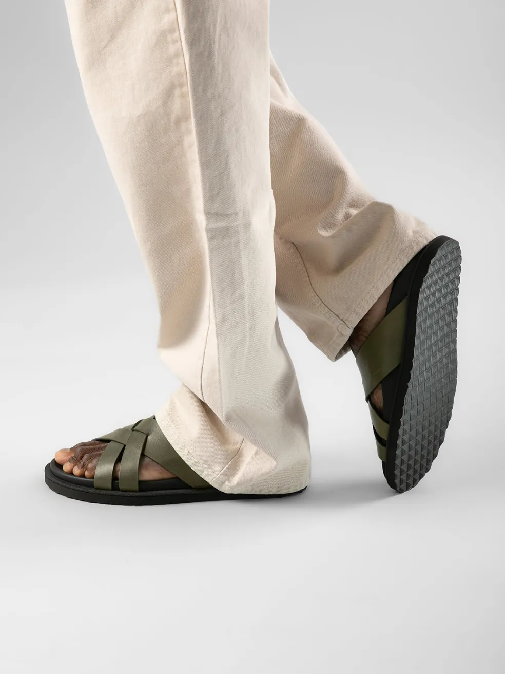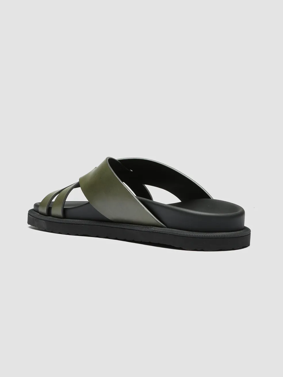 Easy to combine and wear, our Charrat slides are handcrafted from fine green smooth leather. They reveal an elegantly crossed strap band, round toe, molded insole and a flat natural rubber sole with a non-slip bottom.