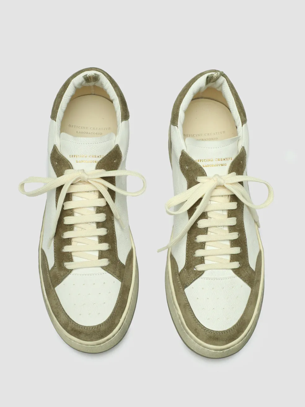 Elevate your footwear game with Officine Creative’s Magic 001 sneakers. The white and khaki colourway and the textural contrast between suede and leather panels will add a touch of visual interest to any outfit.