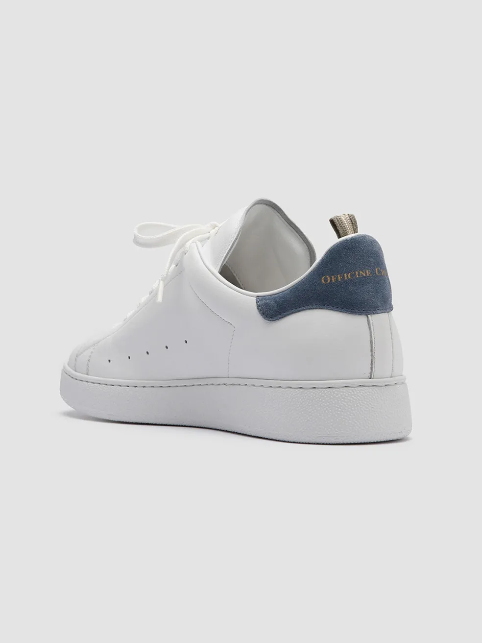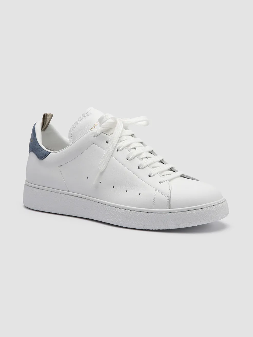 Versatile and truly comfortable our Mower sneakers are handcrafted from premium white leather and marked by a back patch in blue suede with gold-tone lettering logo. They set on a lightweight rubber sole and reveal logo at the tongue flat cotton laces and our signature grosgrain heel loop tab.