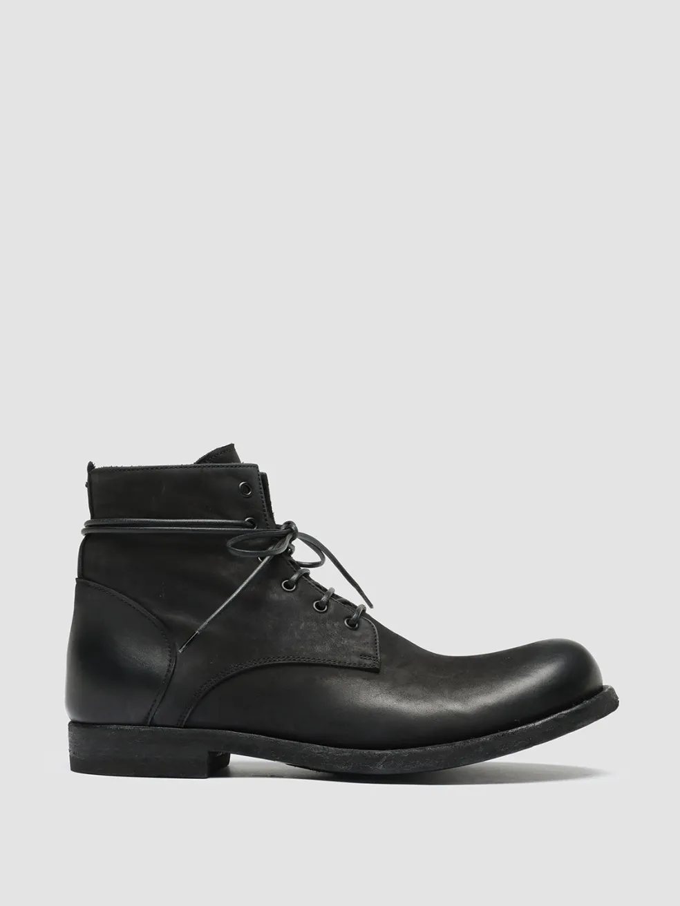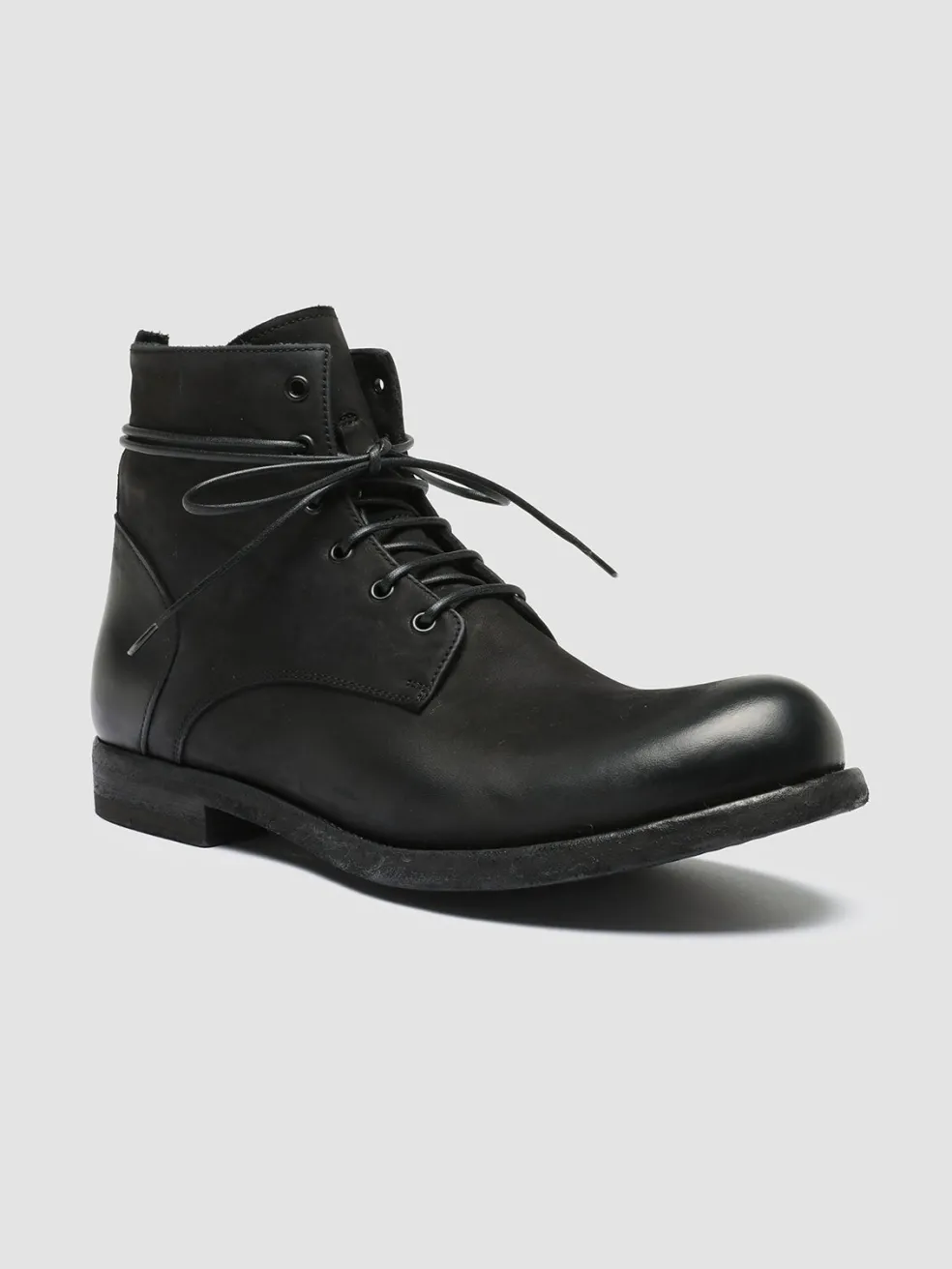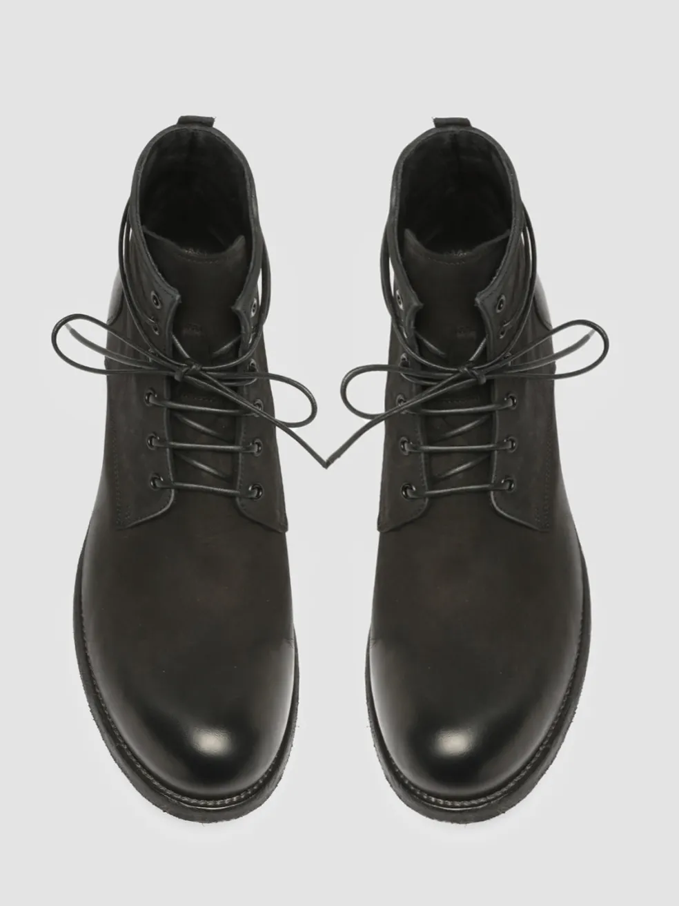 Our Bubble are the contemporary and artisanal reinterpretation of lace-up boots. The upper and the classic side inserts are made from black soft suede. They feature a rounded toe and a leather sole with a stacked heel and grip rubber inserts.