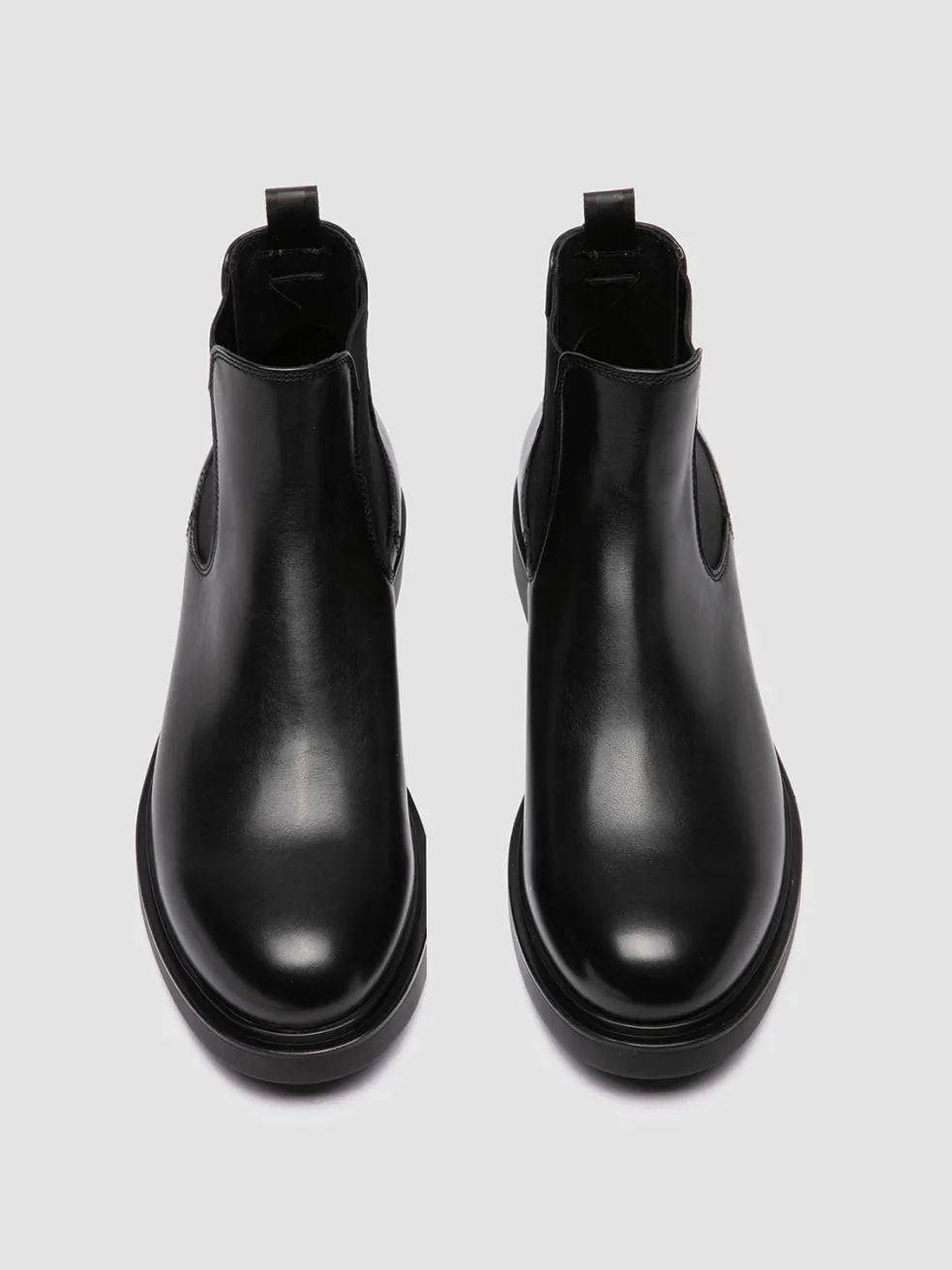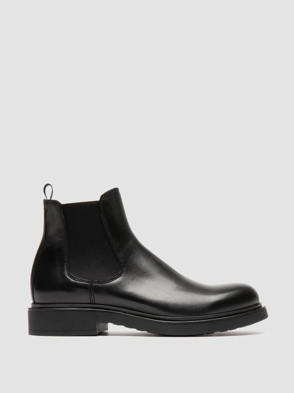 The Engineer 006 boots showcase a timeless Chelsea silhouette with elastic side panels, elevated by a sleek, polished finish. Handmade in Italy, they feature a robust construction in premium black leather and a rubber sole.