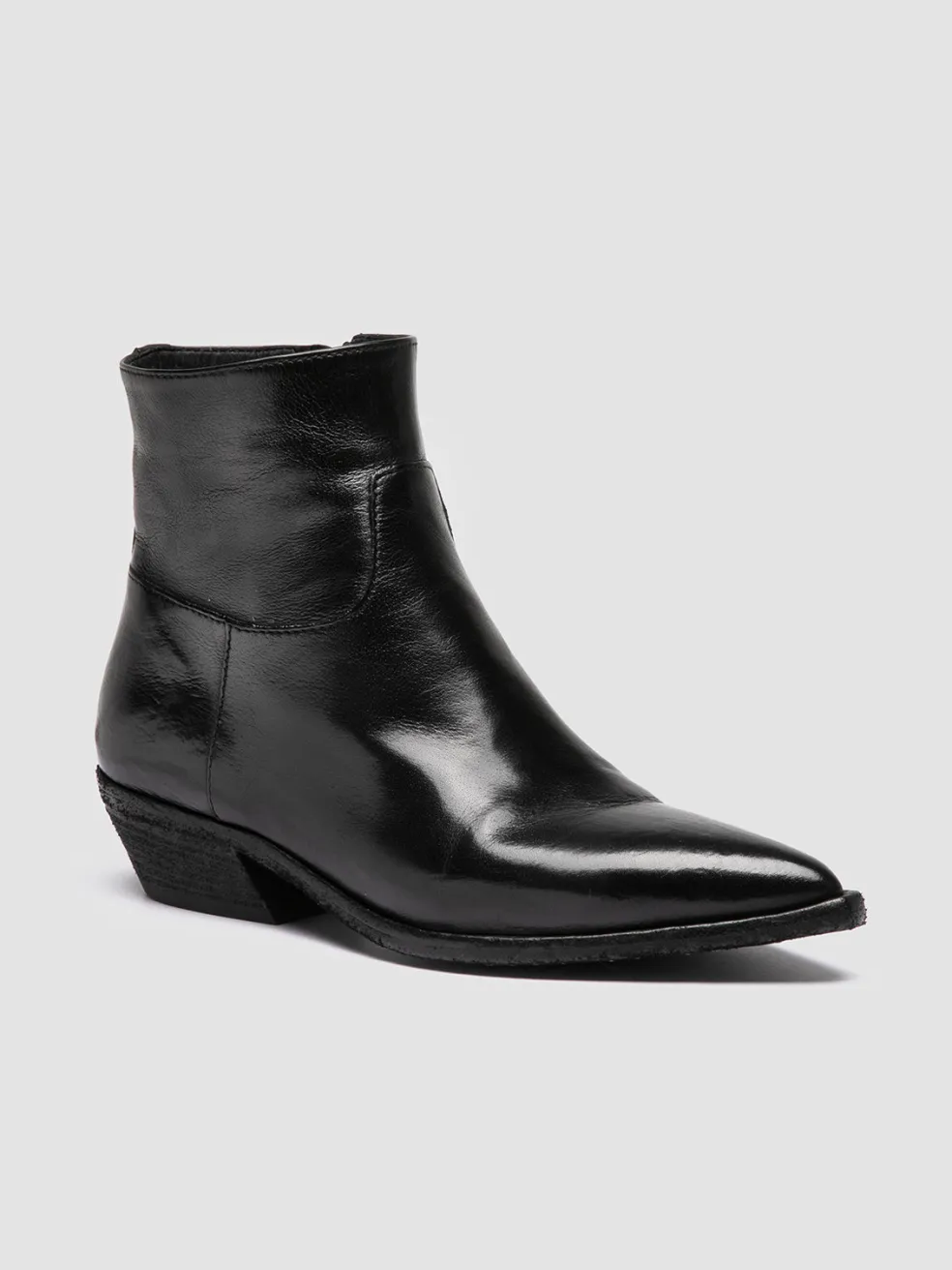 The Noelie DD 102 black leather boots are handmade in Italy and feature a sophisticated silhouette with a deep-dyed finish. This sleek model is mounted on a robust rubber-injected sole with a slanted heel, ensuring lasting wear.