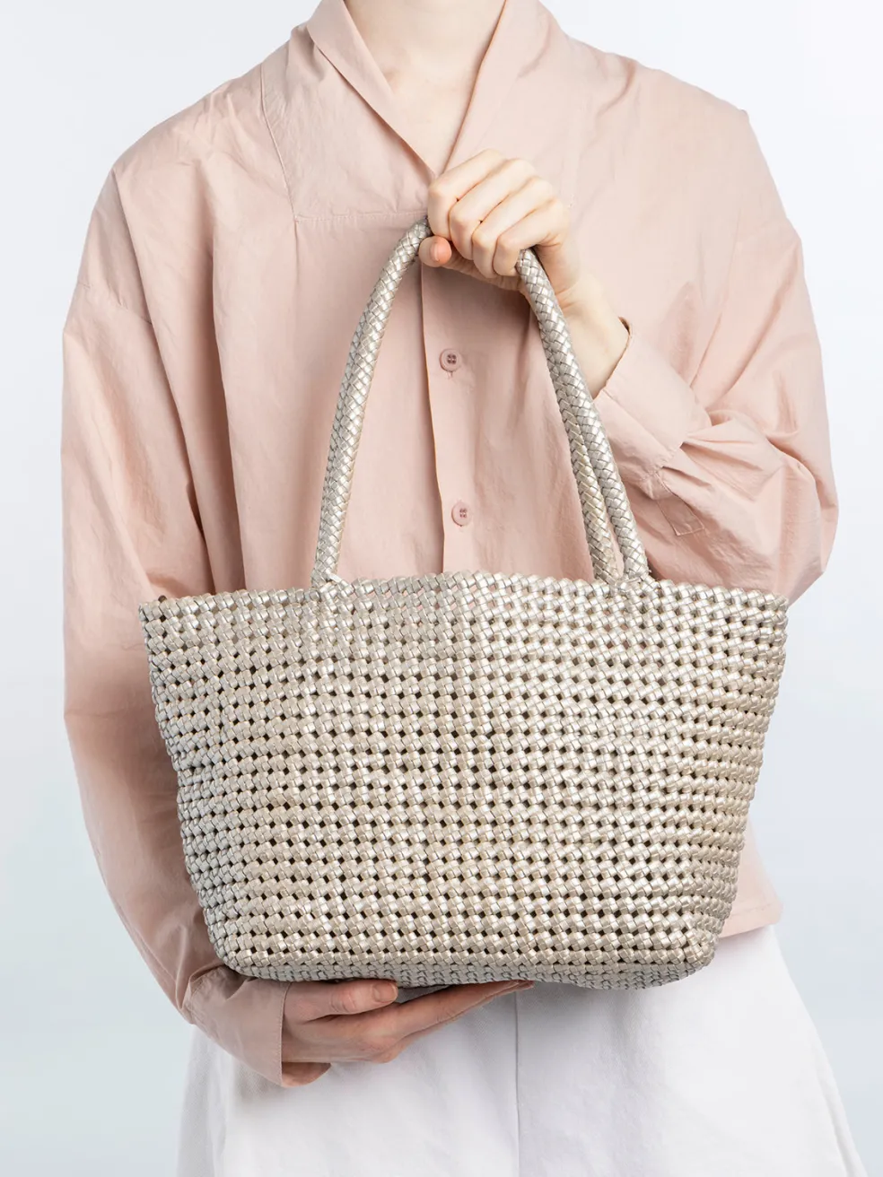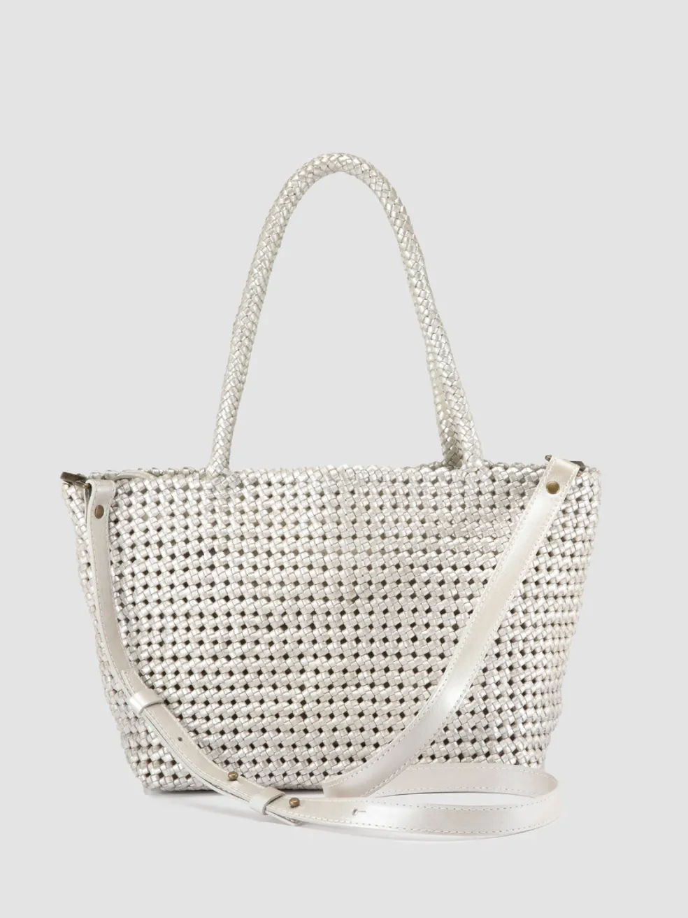 With a hand-woven leather body in a striking silver hue, the Susan 009 shoulder bag is an expression of exquisite Italian craftsmanship. It features an unlined interior that showcases the impeccable quality of the leather, complemented by a detachable shoulder strap and an internal magnetic button for a secure closure.