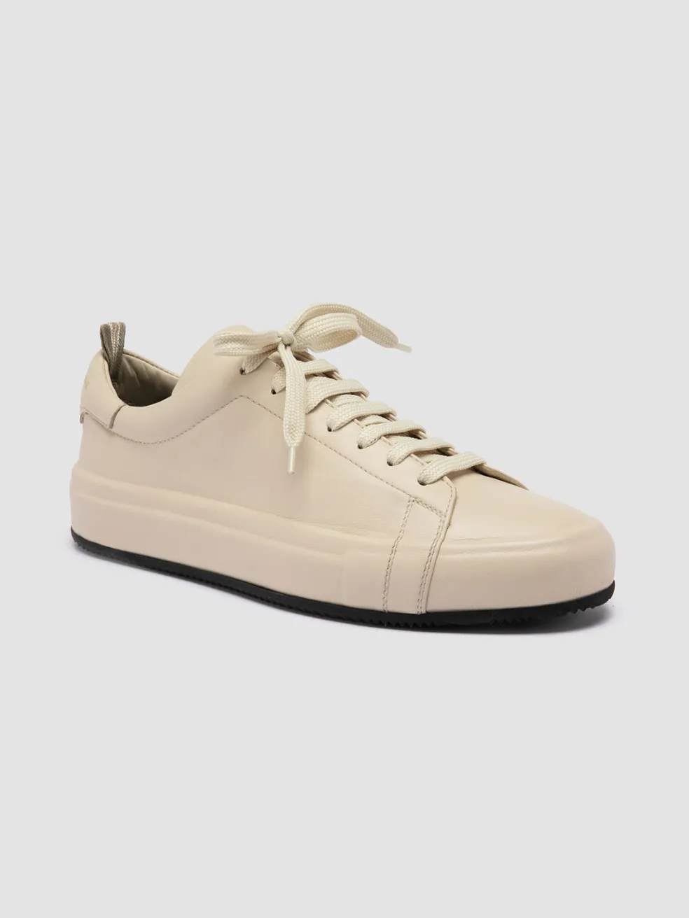 An urban statement with a distinctive Italian flair. Handcrafted in premium ivory leather, the Easy 101 sneakers feature a characteristic encased design with a clean-lined silhouette enhanced by a chunky rubber sole and the iconic grosgrain loop tab on the heel. A contemporary model for a bold look.