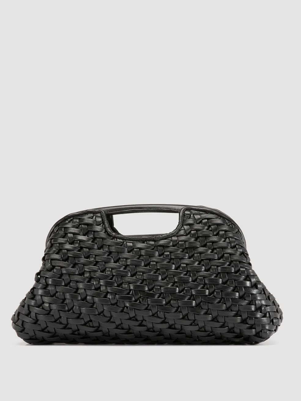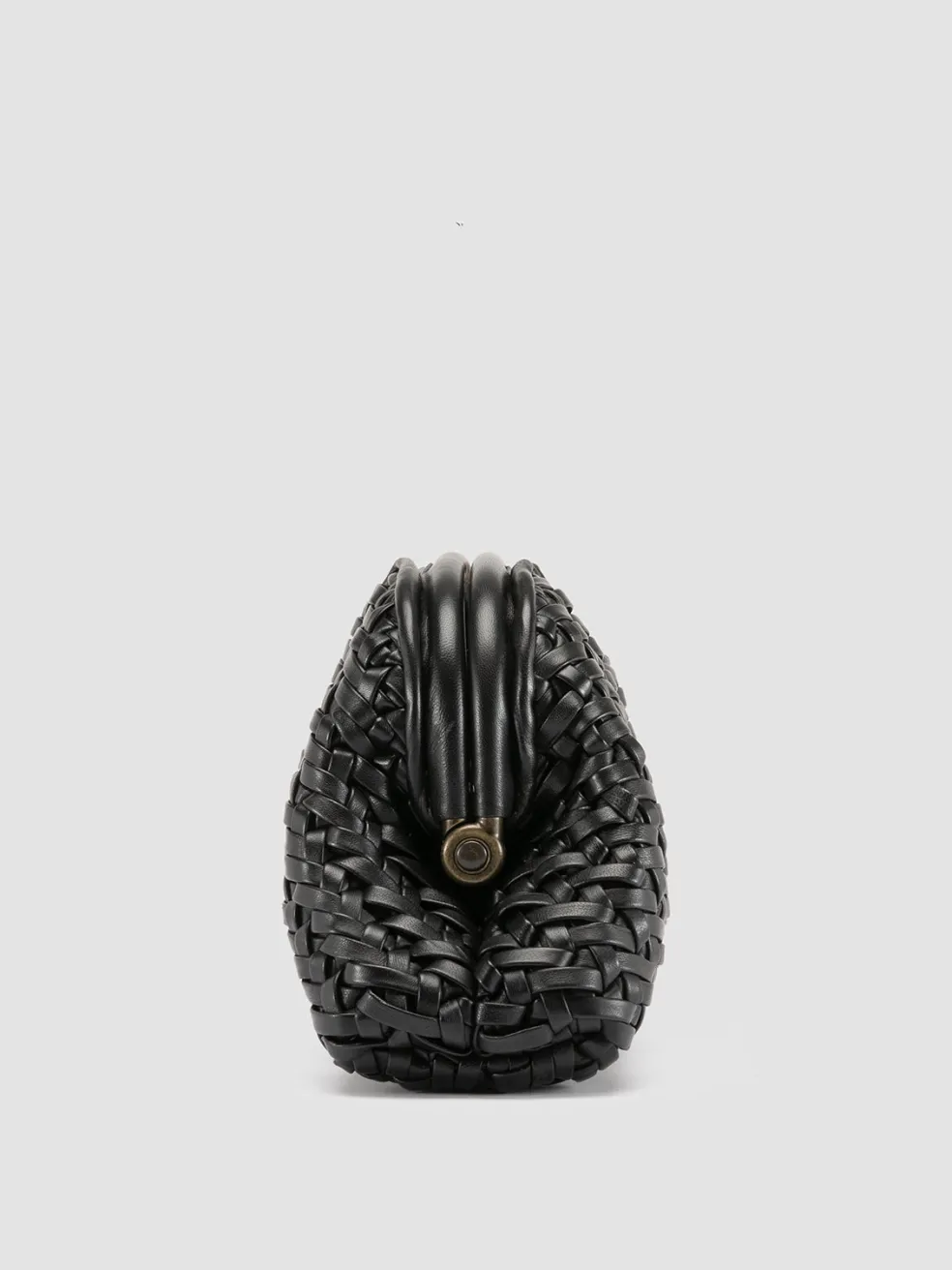 A refined and exclusive vintage-style design distinguishes our Helen medium clutch bag in fine black woven leather. Made entirely by hand by our craftsmen, it shows two rigid top handles, adjustable and detachable thin shoulder strap, fabric lining, internal panel with magnetic button fastening and embossed lettering logo, inside zip pocket and antiqued gold-tone metal hardware.