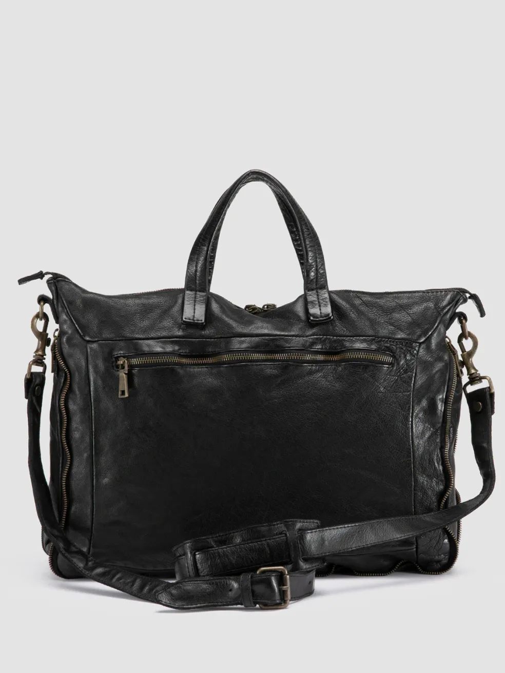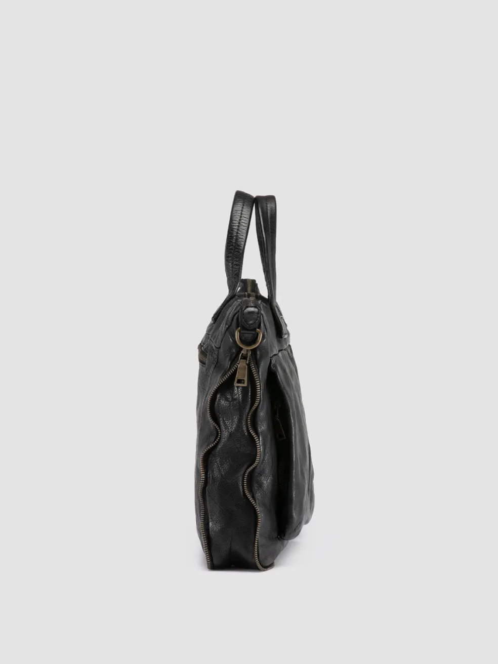 Perfect for carrying documents in style, the Helmet 046 briefcase is handmade in Italy from supple black leather. It features a minimalist, functional design with multiple compartments, top handles and a detachable strap.