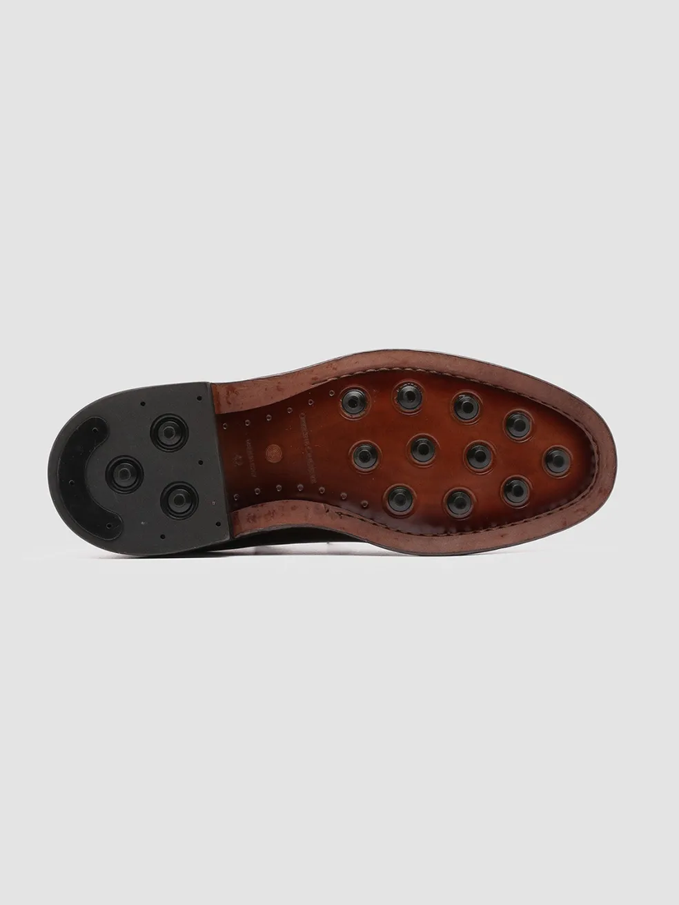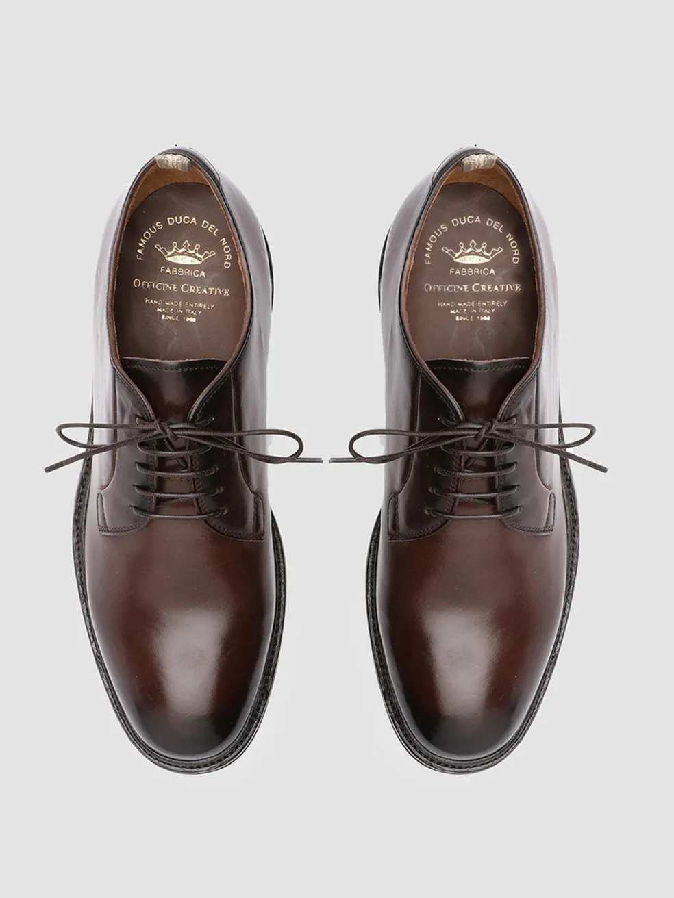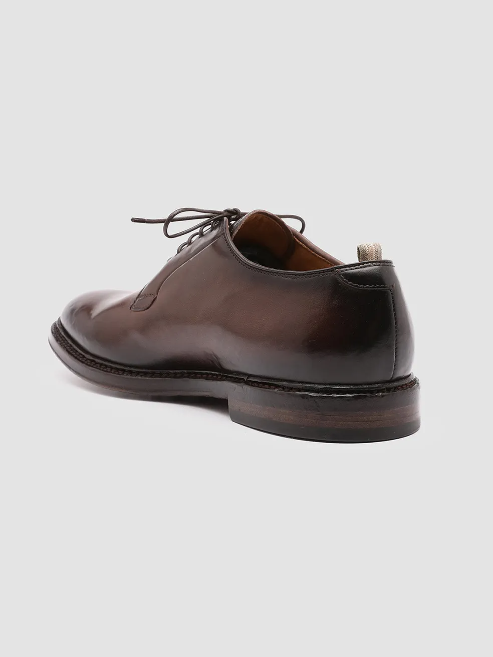 Our Hopkins 003 derby shoes combine impeccable craftsmanship with durability and contemporary sophistication. They’re set on classic leather soles and made from supple airbrushed brown leather that’s been brushed for rugged finish.