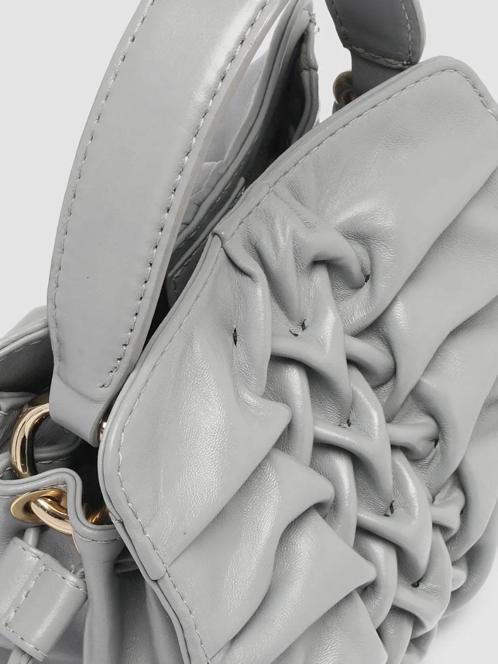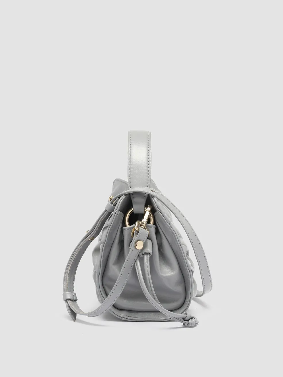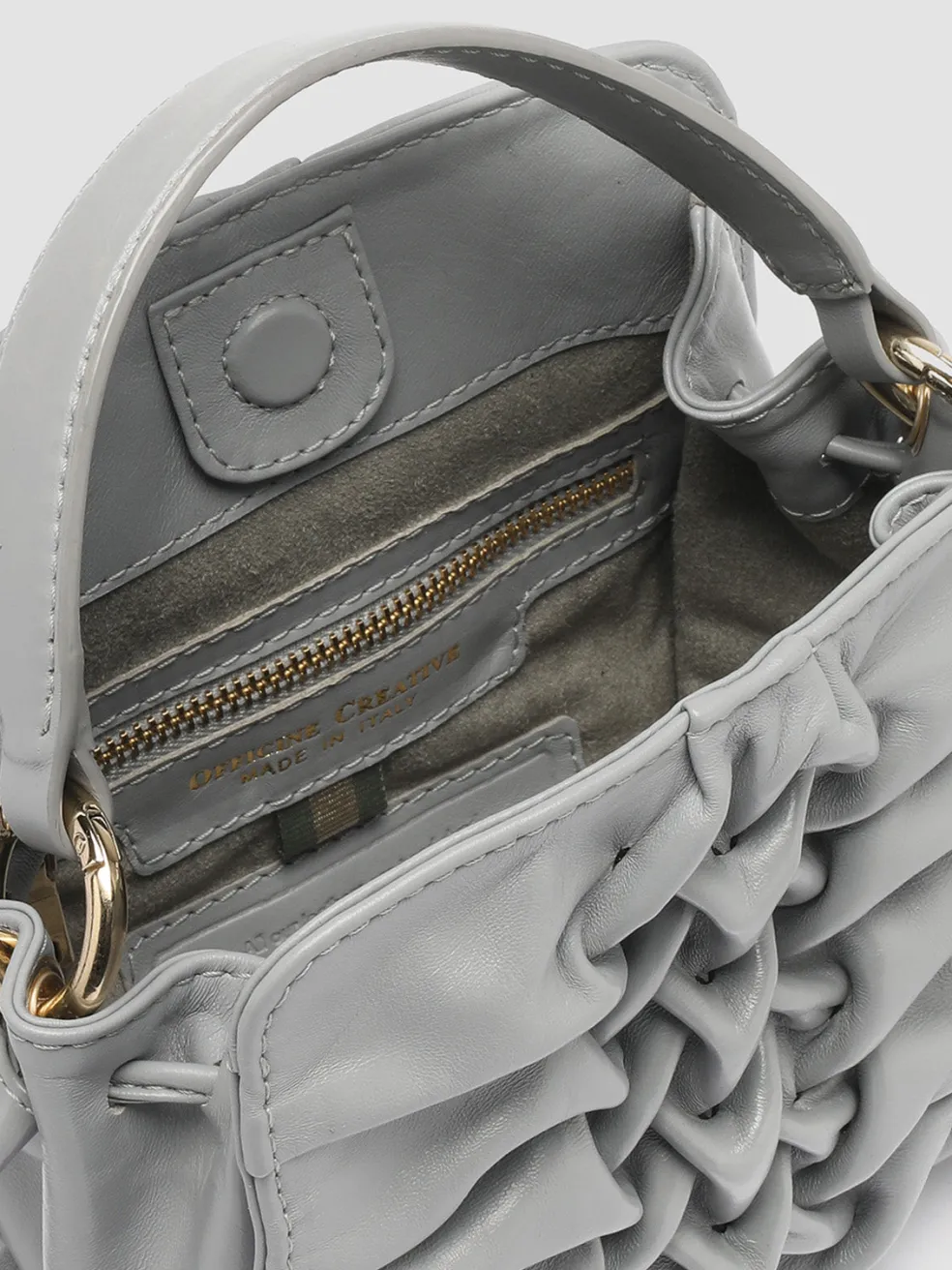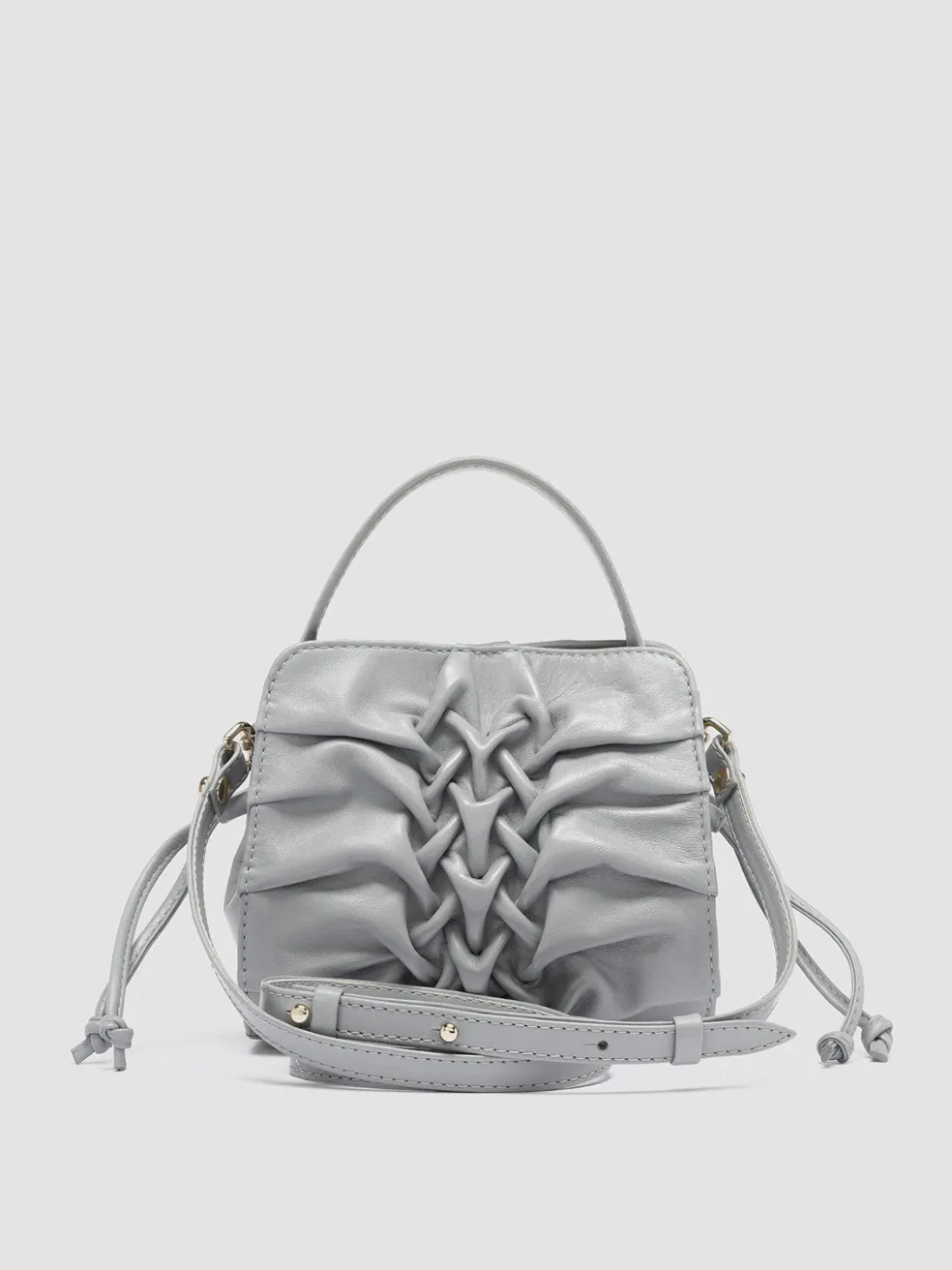 A testament to skilled Italian craftsmanship, the Hornback 004 grey model is a beautifully handwoven leather handle bag with a unique three-dimensional front panel. The compact silhouette features a structured top handle and a detachable shoulder strap.
